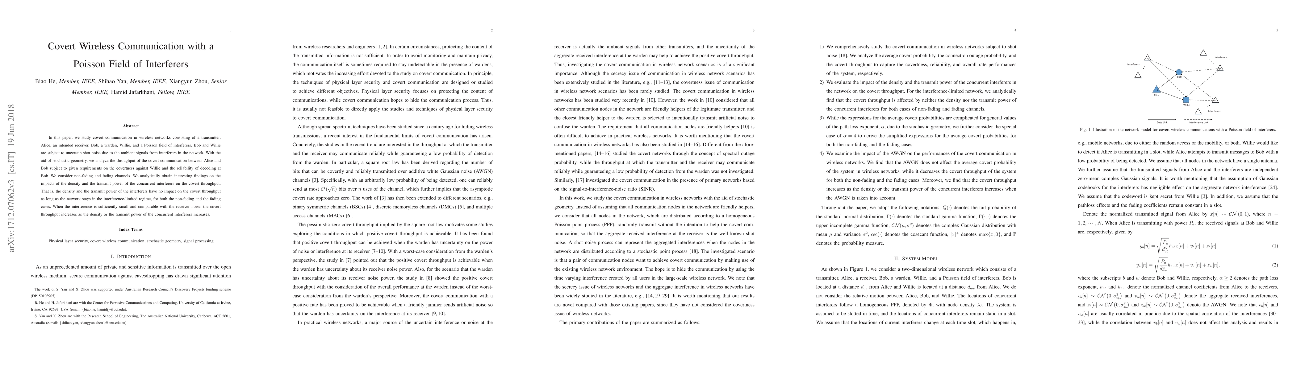 In this paper, we study covert communication in wireless networks consisting of a transmitter, Alice, an intended receiver, Bob, a warden, Willie, and a Poisson field of interferers. Bob and Willie are subject to uncertain shot noise due to the ambient signals from interferers in the network. With the aid of stochastic geometry, we analyze the throughput of the covert communication between Alice and Bob subject to given requirements on the covertness against Willie and the reliability of decoding at Bob. We consider non-fading and fading channels. We analytically obtain interesting findings on the impacts of the density and the transmit power of the concurrent interferers on the covert throughput. That is, the density and the transmit power of the interferers have no impact on the covert throughput as long as the network stays in the interference-limited regime, for both the non-fading and the fading cases. When the interference is sufficiently small and comparable with the receiver noise, the covert throughput increases as the density or the transmit power of the concurrent interferers increases.