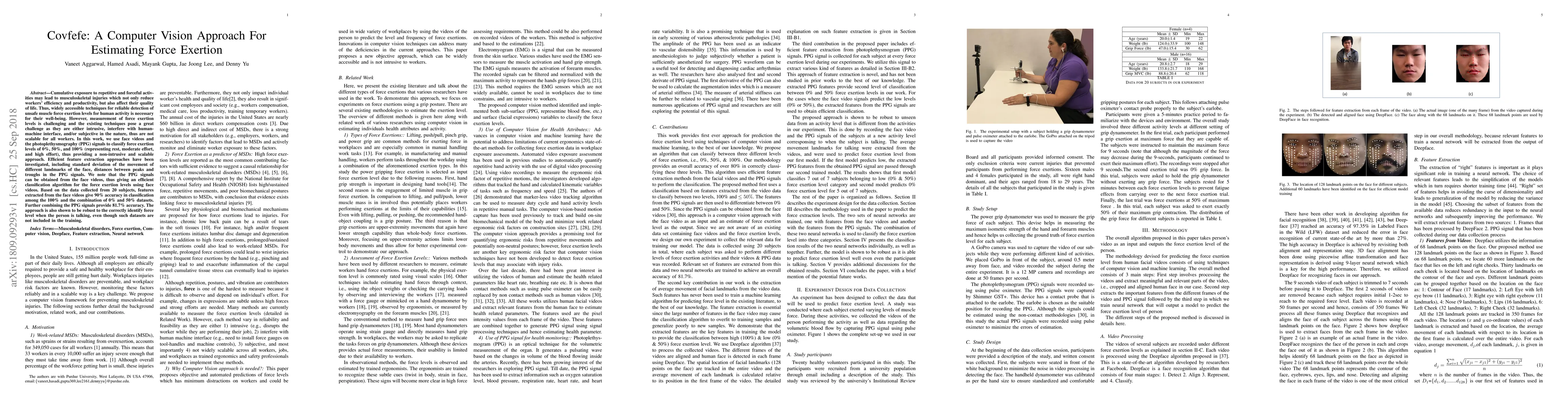 Researchers developed a non-intrusive method to estimate force exertion levels in workers using face videos and photoplethysmography signals, achieving 90% accuracy with just the face video features.