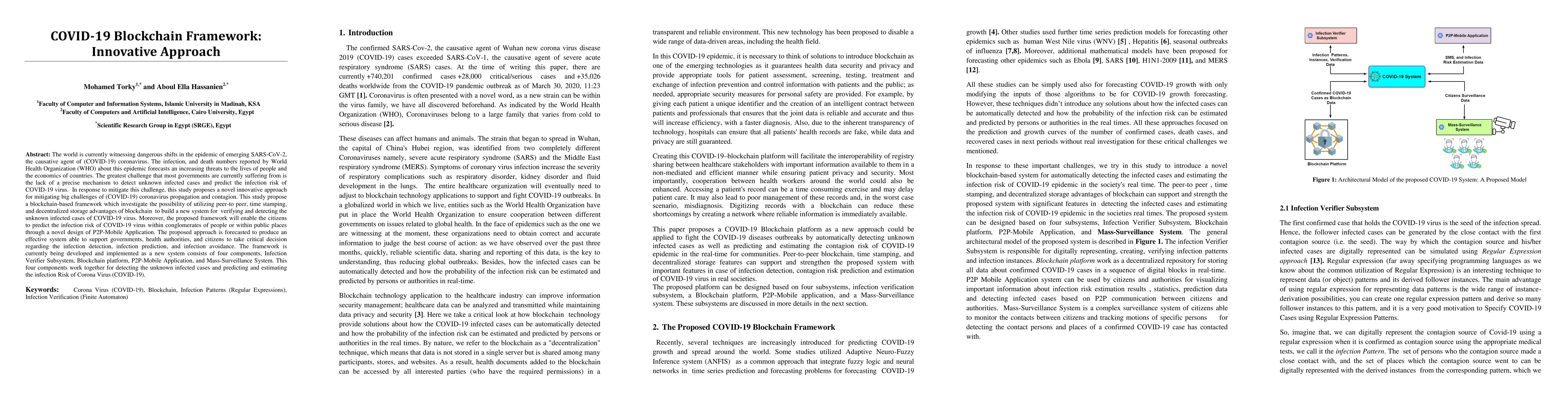 A blockchain-based framework is proposed to detect unknown COVID-19 cases and predict infection risk through a peer-to-peer application, aiming to support governments, health authorities, and citizens in making informed decisions.