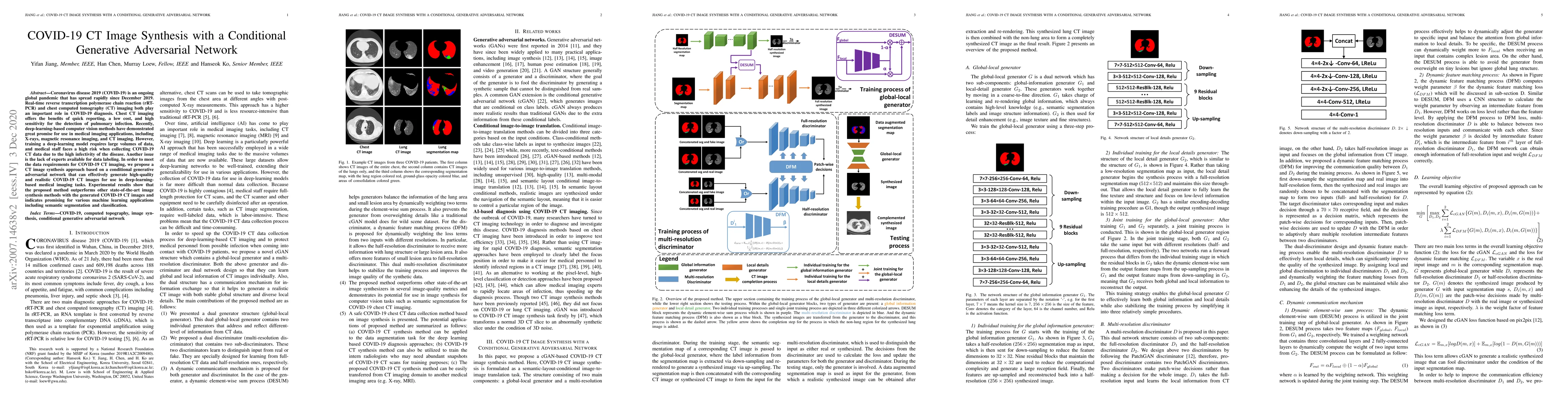 This paper proposes a conditional generative adversarial network (GAN) for synthesizing high-quality and realistic COVID-19 chest CT images to address the scarcity of labeled data and the risks involved in collecting real patient data. The method outperforms other image synthesis techniques, showing potential for applications in medical imaging tasks like semantic segmentation and classification.