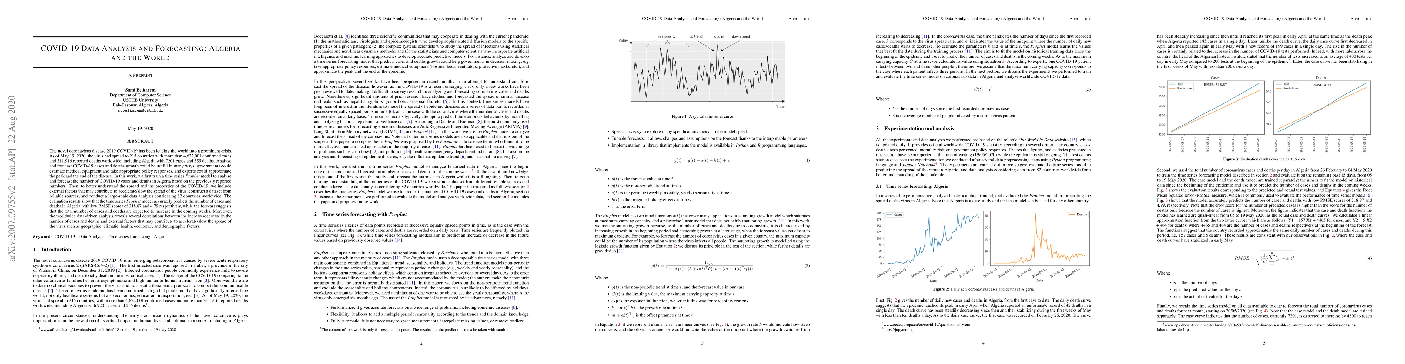 The novel coronavirus disease 2019 COVID-19 has been leading the world into a prominent crisis. As of May 19, 2020, the virus had spread to 215 countries with more than 4,622,001 confirmed cases and 311,916 reported deaths worldwide, including Algeria with 7201 cases and 555 deaths. Analyze and forecast COVID-19 cases and deaths growth could be useful in many ways, governments could estimate medical equipment and take appropriate policy responses, and experts could approximate the peak and the end of the disease. In this work, we first train a time series Prophet model to analyze and forecast the number of COVID-19 cases and deaths in Algeria based on the previously reported numbers. Then, to better understand the spread and the properties of the COVID-19, we include external factors that may contribute to accelerate/slow the spread of the virus, construct a dataset from reliable sources, and conduct a large-scale data analysis considering 82 countries worldwide. The evaluation results show that the time series Prophet model accurately predicts the number of cases and deaths in Algeria with low RMSE scores of 218.87 and 4.79 respectively, while the forecast suggests that the total number of cases and deaths are expected to increase in the coming weeks. Moreover, the worldwide data-driven analysis reveals several correlations between the increase/decrease in the number of cases and deaths and external factors that may contribute to accelerate/slow the spread of the virus such as geographic, climatic, health, economic, and demographic factors.