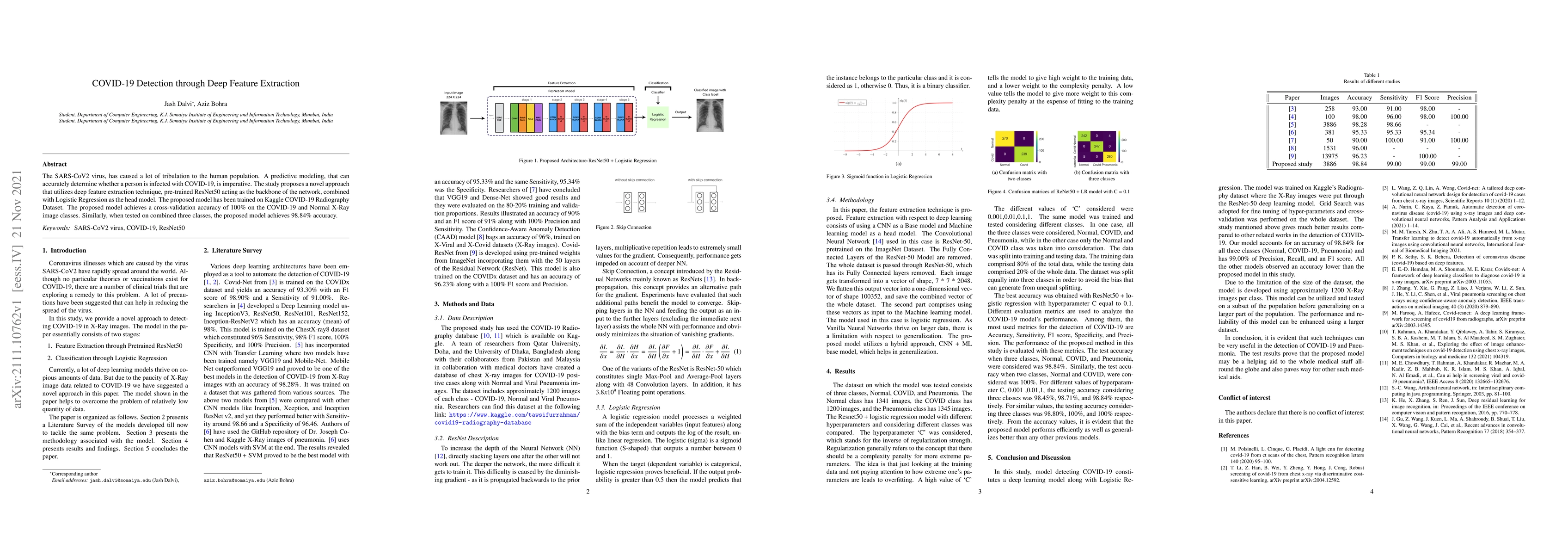 The SARS-CoV2 virus has caused a lot of tribulation to the human population. Predictive modeling that can accurately determine whether a person is infected with COVID-19 is imperative. The study proposes a novel approach that utilizes deep feature extraction technique, pre-trained ResNet50 acting as the backbone of the network, combined with Logistic Regression as the head model. The proposed model has been trained on Kaggle COVID-19 Radiography Dataset. The proposed model achieves a cross-validation accuracy of 100% on the COVID-19 and Normal X-Ray image classes. Similarly, when tested on combined three classes, the proposed model achieves 98.84% accuracy.