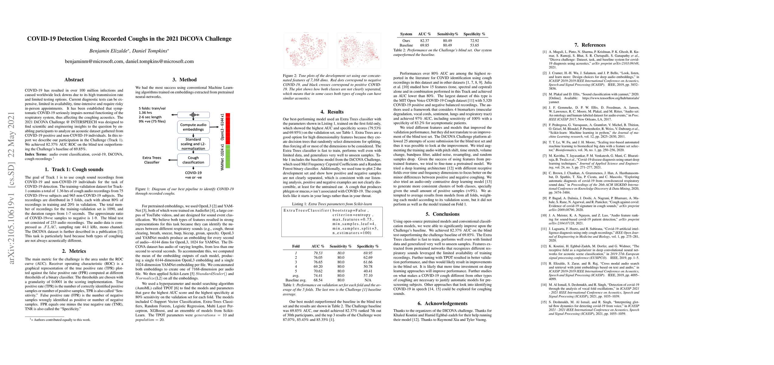 COVID-19 has resulted in over 100 million infections and caused worldwide lock downs due to its high transmission rate and limited testing options. Current diagnostic tests can be expensive, limited in availability, time-intensive and require risky in-person appointments. It has been established that symptomatic COVID-19 seriously impairs normal functioning of the respiratory system, thus affecting the coughing acoustics. The 2021 DiCOVA Challenge @ INTERSPEECH was designed to find scientific and engineering insights to the question by enabling participants to analyze an acoustic dataset gathered from COVID-19 positive and non-COVID-19 individuals. In this report we describe our participation in the Challenge (Track 1). We achieved 82.37% AUC ROC on the blind test outperforming the Challenge's baseline of 69.85%.