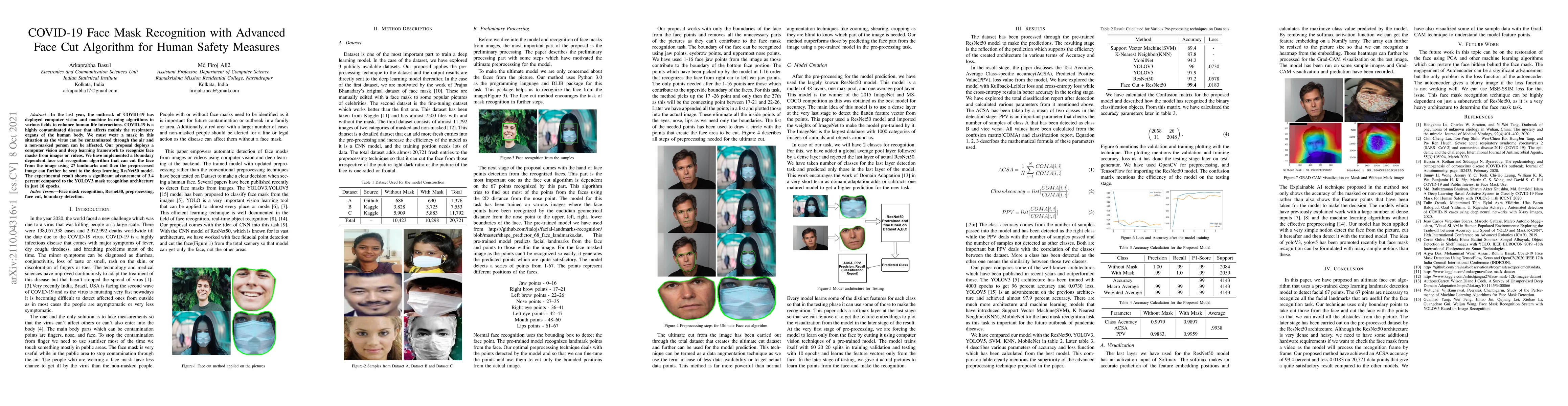 In the last year, the outbreak of COVID-19 has deployed computer vision and machine learning algorithms in various fields to enhance human life interactions. COVID-19 is a highly contaminated disease that affects mainly the respiratory organs of the human body. We must wear a mask in this situation as the virus can be contaminated through the air and a non-masked person can be affected. Our proposal deploys a computer vision and deep learning framework to recognize face masks from images or videos. We have implemented a Boundary dependent face cut recognition algorithm that can cut the face from the image using 27 landmarks and then the preprocessed image can further be sent to the deep learning ResNet50 model. The experimental result shows a significant advancement of 3.4 percent compared to the YOLOV3 mask recognition architecture in just 10 epochs.