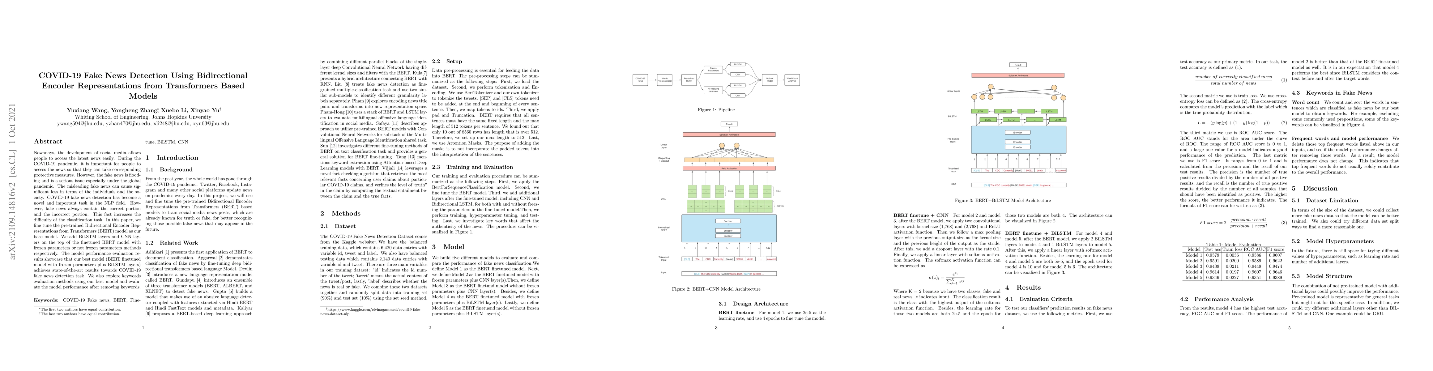 This paper fine-tunes a pre-trained BERT model with added BiLSTM and CNN layers to detect COVID-19 fake news, achieving state-of-the-art results. The best performing model, using frozen BERT parameters and BiLSTM layers, also demonstrates effective keyword evaluation for performance analysis.