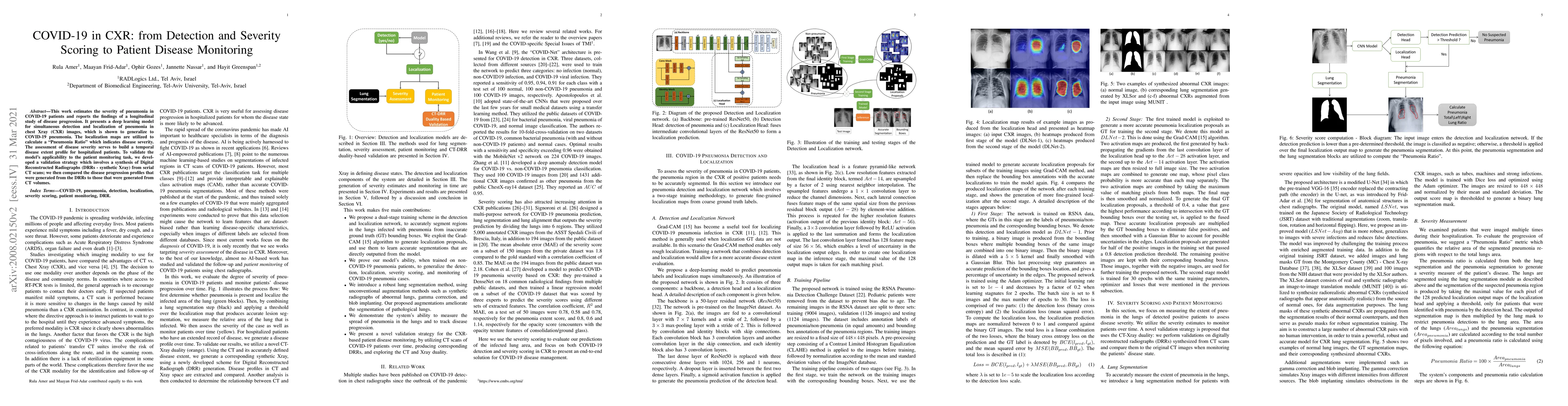 This paper develops a deep learning model for detecting and segmenting COVID-19 pneumonia in chest X-ray images, calculating a "Pneumonia Ratio" to assess disease severity, and monitoring disease progression over time. The model's effectiveness is validated by comparing disease progression profiles derived from synthetic X-rays to those from CT scans.