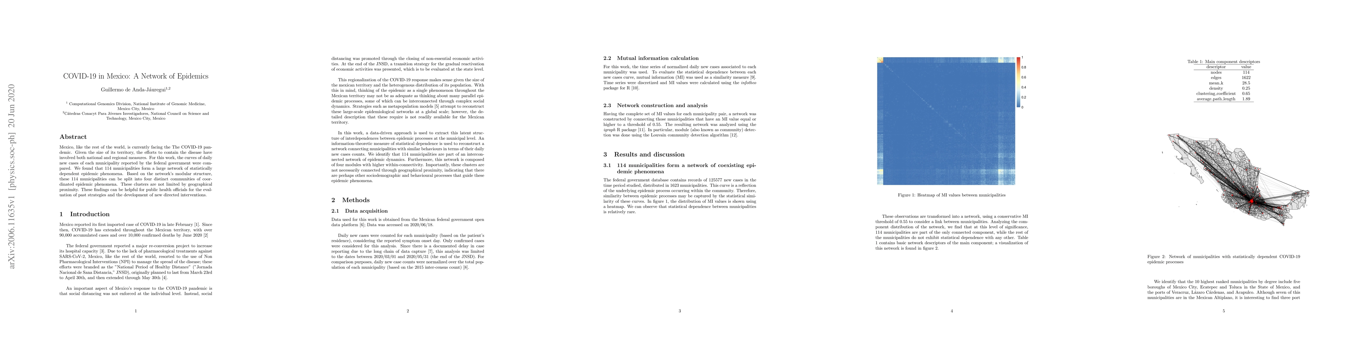 Mexico, like the rest of the world, is currently facing the The COVID-19 pandemic. Given the size of its territory, the efforts to contain the disease have involved both national and regional measures. For this work, the curves of daily new cases of each municipality reported by the federal government were compared. We found that 114 municipalities form a large network of statistically dependent epidemic phenomena. Based on the network's modular structure, these 114 municipalities can be split into four distinct communities of coordinated epidemic phenomena. These clusters are not limited by geographical proximity. These findings can be helpful for public health officials for the evaluation of past strategies and the development of new directed interventions.