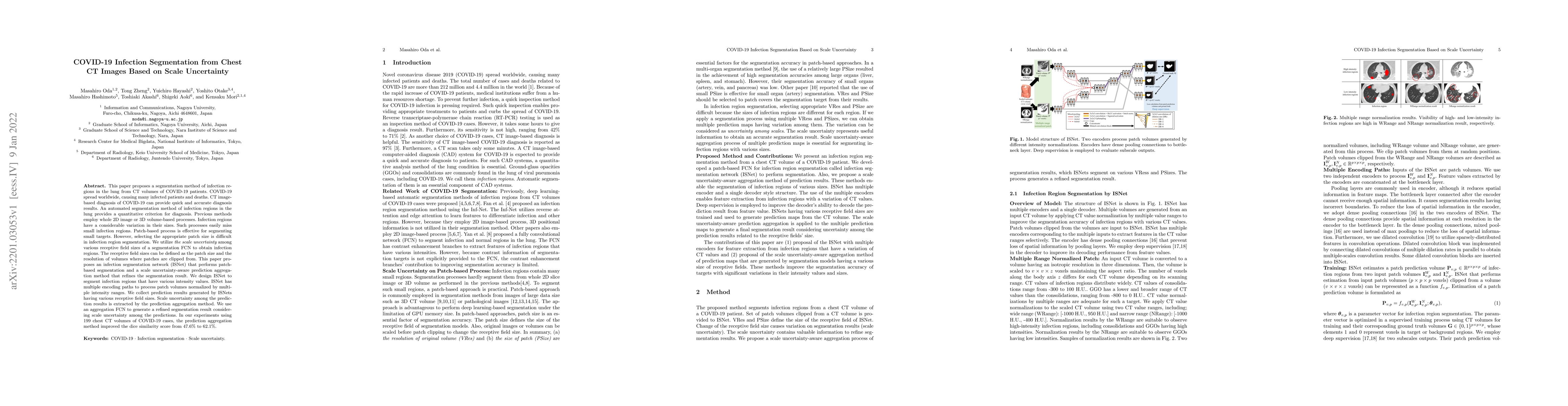 This paper proposes ISNet, a segmentation network for detecting COVID-19 infection regions in chest CT images, utilizing scale uncertainty across various receptive field sizes to improve segmentation of regions with varying sizes and intensities. The prediction aggregation method enhanced the dice similarity score from 47.6% to 62.1% in experiments with 199 CT volumes.