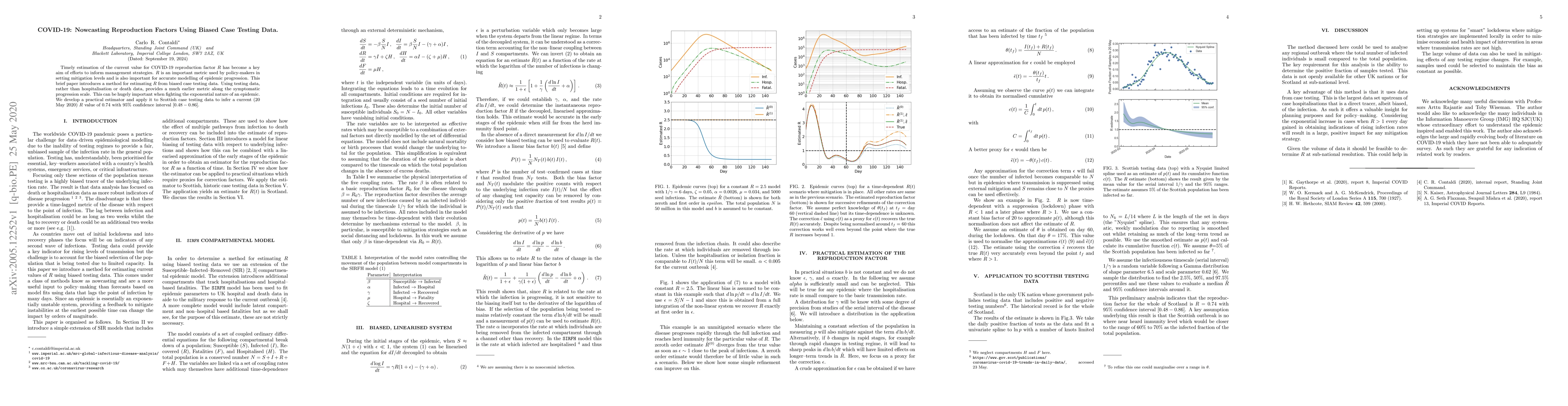 Timely estimation of the current value for COVID-19 reproduction factor $R$ has become a key aim of efforts to inform management strategies. $R$ is an important metric used by policy-makers in setting mitigation levels and is also important for accurate modelling of epidemic progression. This brief paper introduces a method for estimating $R$ from biased case testing data. Using testing data, rather than hospitalisation or death data, provides a much earlier metric along the symptomatic progression scale. This can be hugely important when fighting the exponential nature of an epidemic. We develop a practical estimator and apply it to Scottish case testing data to infer a current (20 May 2020) $R$ value of $0.74$ with $95\%$ confidence interval $[0.48 - 0.86]$.