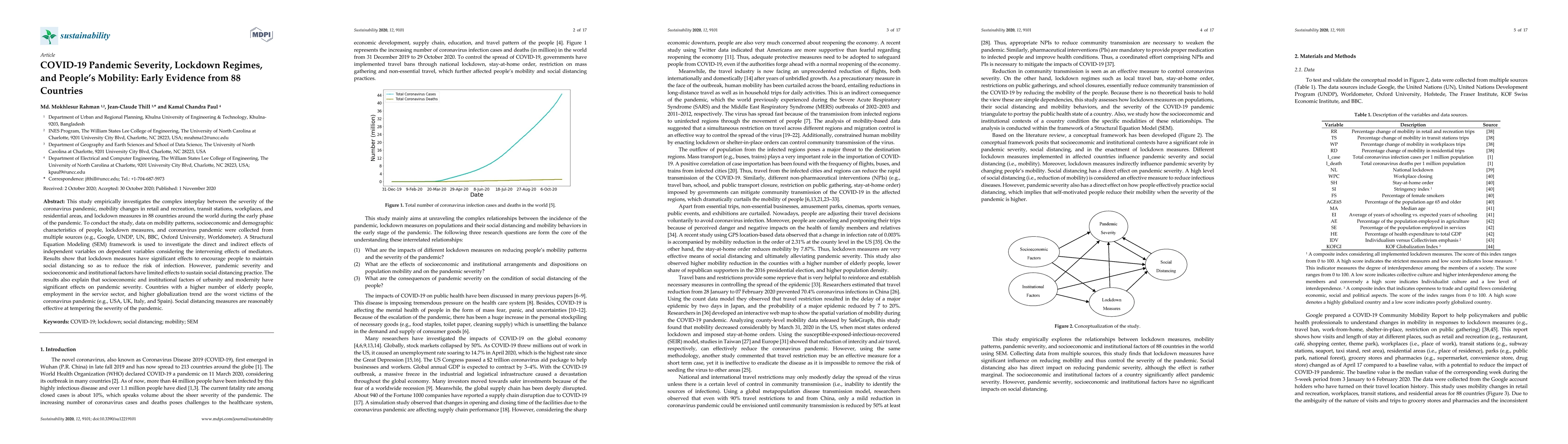 This study empirically investigates the complex interplay between the severity of the coronavirus pandemic, mobility changes in retail and recreation, transit stations, workplaces, and residential areas, and lockdown measures in 88 countries of the word. To conduct the study, data on mobility patterns, socioeconomic and demographic characteristics of people, lockdown measures, and coronavirus pandemic were collected from multiple sources (e.g., Google, UNDP, UN, BBC, Oxford University, Worldometer). A Structural Equation Modeling (SEM) technique is used to investigate the direct and indirect effects of independent variables on dependent variables considering the intervening effects of mediators. Results show that lockdown measures have significant effects to encourage people to maintain social distancing. However, pandemic severity and socioeconomic and institutional factors have limited effects to sustain social distancing practice. The results also explain that socioeconomic and institutional factors of urbanity and modernity have significant effects on pandemic severity. Countries with a higher number of elderly people, employment in the service sector, and higher globalization trend are the worst victims of the coronavirus pandemic (e.g., USA, UK, Italy, and Spain). Social distancing measures are reasonably effective at tempering the severity of the pandemic.