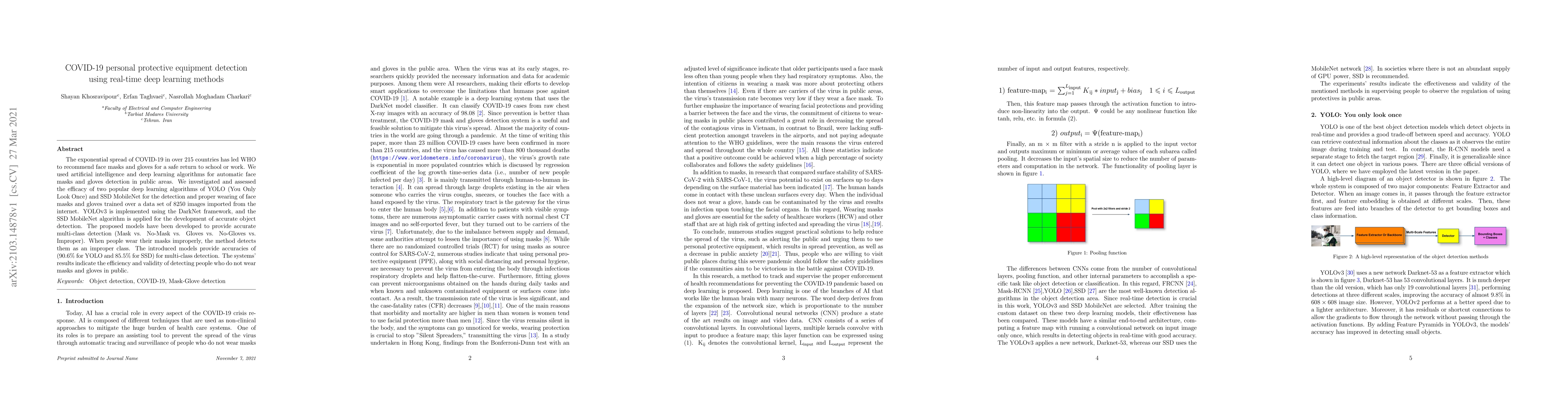 This paper explores the use of deep learning algorithms, specifically YOLOv3 and SSD MobileNet, to automatically detect and classify the proper wearing of face masks and gloves in public areas. The models achieve accuracies of 90.6% and 85.5% respectively, demonstrating the effectiveness of these methods in ensuring compliance with COVID-19 safety protocols.