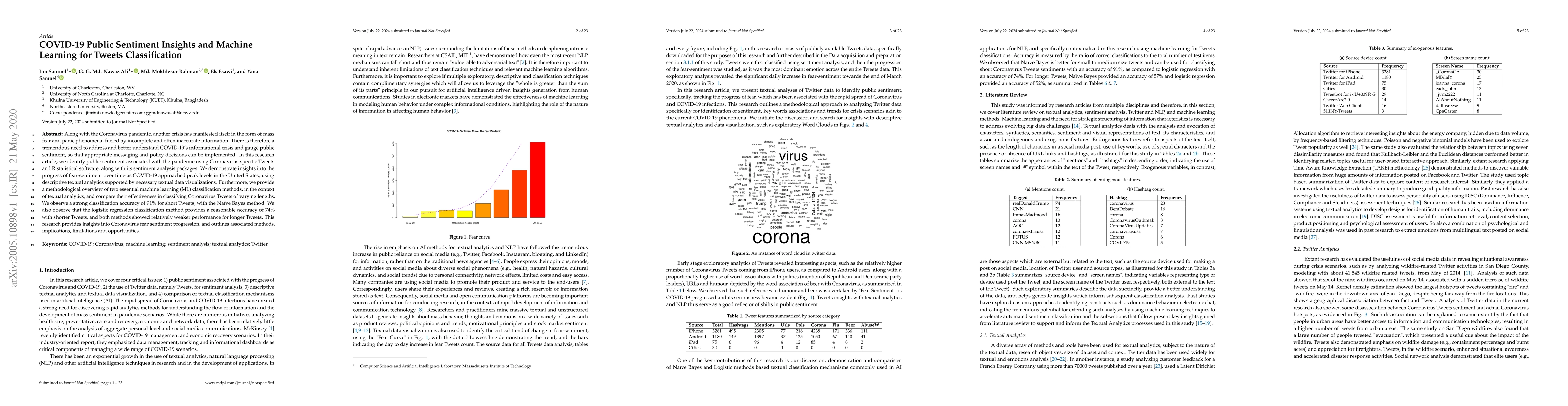 This study analyzes public sentiment towards COVID-19 through sentiment analysis of tweets using machine learning classification methods. It finds high accuracy (91%) with Naive Bayes for short tweets, while logistic regression shows 74% accuracy for the same, highlighting the progression of fear sentiment during the pandemic and discussing method implications.