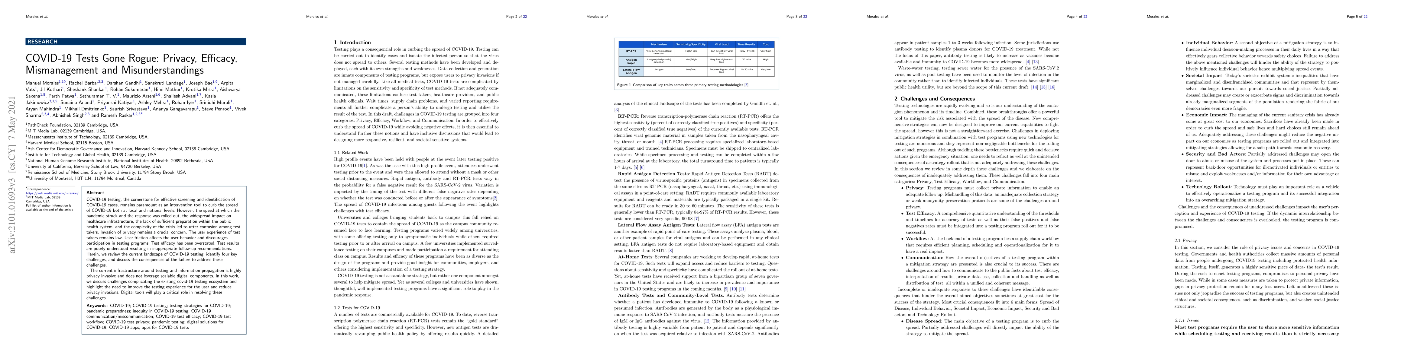 COVID-19 testing, the cornerstone for effective screening and identification of COVID-19 cases, remains paramount as an intervention tool to curb the spread of COVID-19 both at local and national levels. However, the speed at which the pandemic struck and the response was rolled out, the widespread impact on healthcare infrastructure, the lack of sufficient preparation within the public health system, and the complexity of the crisis led to utter confusion among test-takers. Invasion of privacy remains a crucial concern. The user experience of test takers remains low. User friction affects user behavior and discourages participation in testing programs. Test efficacy has been overstated. Test results are poorly understood resulting in inappropriate follow-up recommendations. Herein, we review the current landscape of COVID-19 testing, identify four key challenges, and discuss the consequences of the failure to address these challenges. The current infrastructure around testing and information propagation is highly privacy-invasive and does not leverage scalable digital components. In this work, we discuss challenges complicating the existing covid-19 testing ecosystem and highlight the need to improve the testing experience for the user and reduce privacy invasions. Digital tools will play a critical role in resolving these challenges.