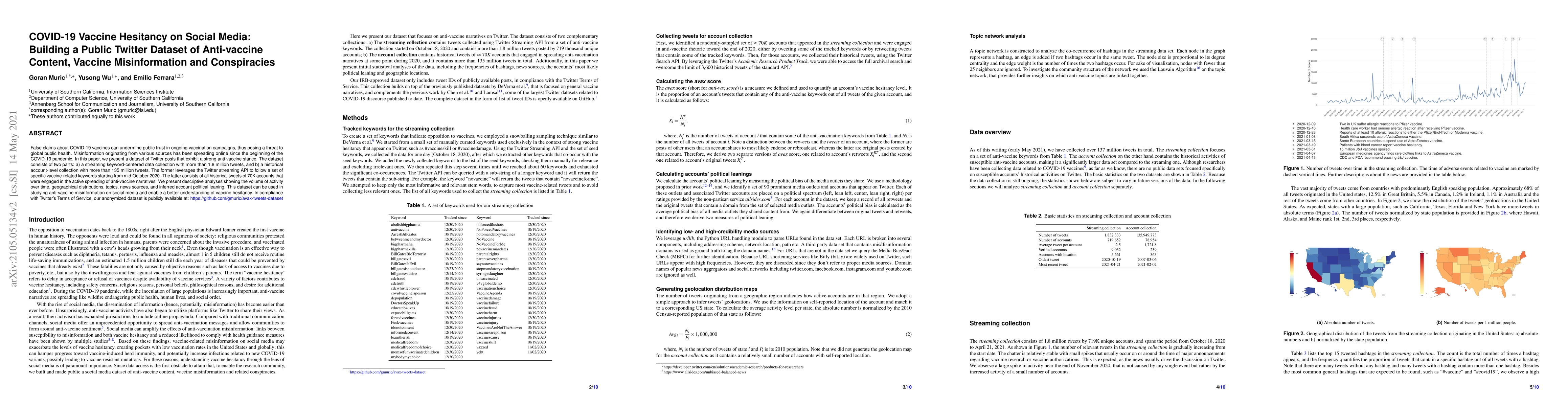 This paper presents a comprehensive Twitter dataset capturing over 1.8 million tweets and 135 million tweets from 70K accounts, showcasing anti-vaccine content and misinformation during the COVID-19 pandemic. The dataset aids in understanding vaccine hesitancy and the spread of misinformation on social media.
