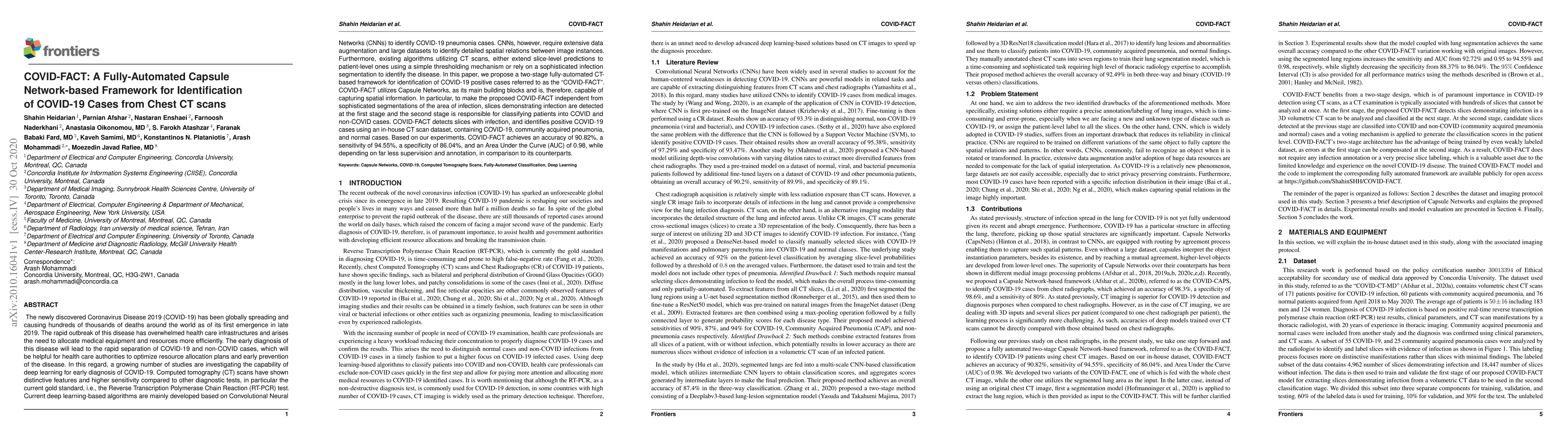 The paper introduces COVID-FACT, a fully-automated framework using Capsule Networks to identify COVID-19 cases from chest CT scans, achieving high accuracy and requiring less data annotation compared to traditional methods. COVID-FACT operates in two stages, detecting infected slices first and then classifying patients, demonstrating superior performance metrics.