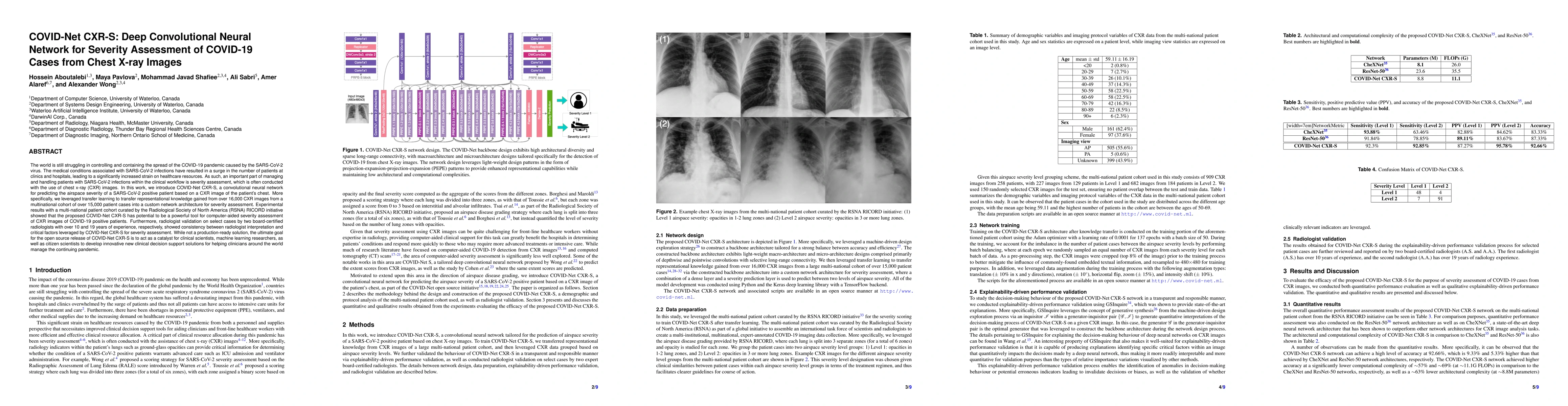 COVID-Net CXR-S is a convolutional neural network designed to assess the severity of COVID-19 cases from chest X-ray images, leveraging transfer learning from over 16,000 images. Initial results show potential as a tool for computer-aided severity assessment, with validation by experienced radiologists.