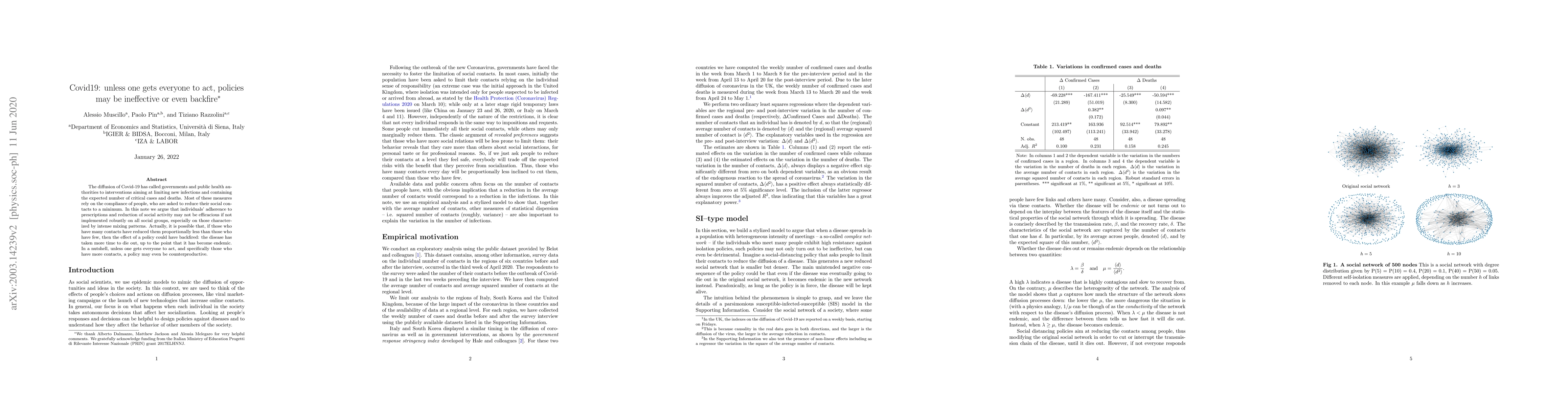 The diffusion of COVID19 is calling governments and public health authorities to interventions that limit new infections and contain the expected number of critical cases and deaths. Most of these measures rely on the compliance of people, who are asked to reduce their social contacts to a minimum. In this note we argue that individuals' adherence to prescriptions and reduction of social activity may not be efficacious if not implemented robustly on all social groups, especially on those characterized by intense mixing patterns. Actually, it is possible that, if those who have many contacts reduce them proportionally less than those who have few, then the effect of a policy could backfire: the disease would take more time to die out, up to the point that it could become endemic. In a nutshell, unless one gets everyone to act, and specifically those who have more contacts, a policy may even be counterproductive.