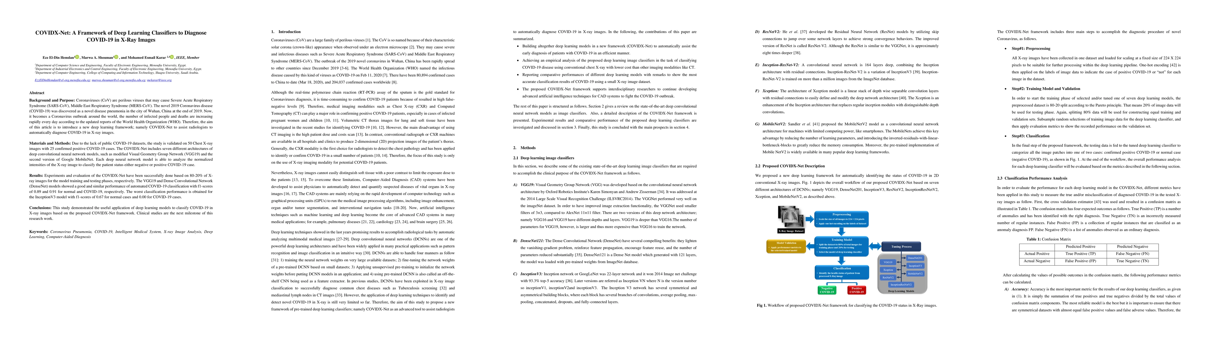 Background and Purpose: Coronaviruses (CoV) are perilous viruses that may cause Severe Acute Respiratory Syndrome (SARS-CoV), Middle East Respiratory Syndrome (MERS-CoV). The novel 2019 Coronavirus disease (COVID-19) was discovered as a novel disease pneumonia in the city of Wuhan, China at the end of 2019. Now, it becomes a Coronavirus outbreak around the world, the number of infected people and deaths are increasing rapidly every day according to the updated reports of the World Health Organization (WHO). Therefore, the aim of this article is to introduce a new deep learning framework; namely COVIDX-Net to assist radiologists to automatically diagnose COVID-19 in X-ray images. Materials and Methods: Due to the lack of public COVID-19 datasets, the study is validated on 50 Chest X-ray images with 25 confirmed positive COVID-19 cases. The COVIDX-Net includes seven different architectures of deep convolutional neural network models, such as modified Visual Geometry Group Network (VGG19) and the second version of Google MobileNet. Each deep neural network model is able to analyze the normalized intensities of the X-ray image to classify the patient status either negative or positive COVID-19 case. Results: Experiments and evaluation of the COVIDX-Net have been successfully done based on 80-20% of X-ray images for the model training and testing phases, respectively. The VGG19 and Dense Convolutional Network (DenseNet) models showed a good and similar performance of automated COVID-19 classification with f1-scores of 0.89 and 0.91 for normal and COVID-19, respectively. Conclusions: This study demonstrated the useful application of deep learning models to classify COVID-19 in X-ray images based on the proposed COVIDX-Net framework. Clinical studies are the next milestone of this research work.