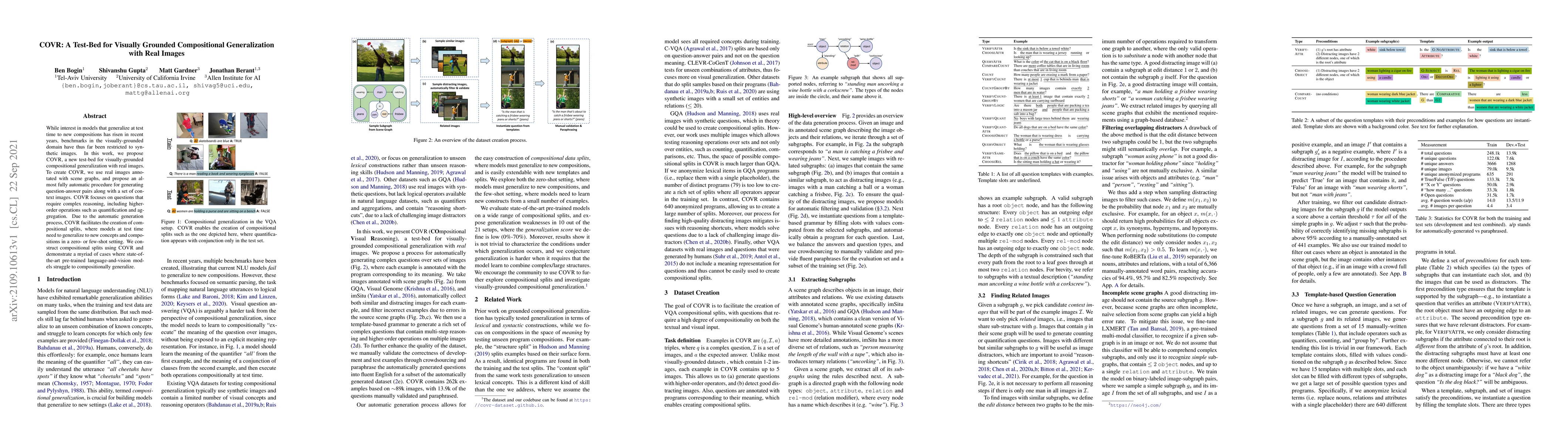 COVR is a new test-bed for evaluating visually grounded compositional generalization using real images, featuring complex reasoning questions and automatic generation of question-answer pairs. It highlights the challenges faced by current models in zero- or few-shot compositional generalization scenarios.