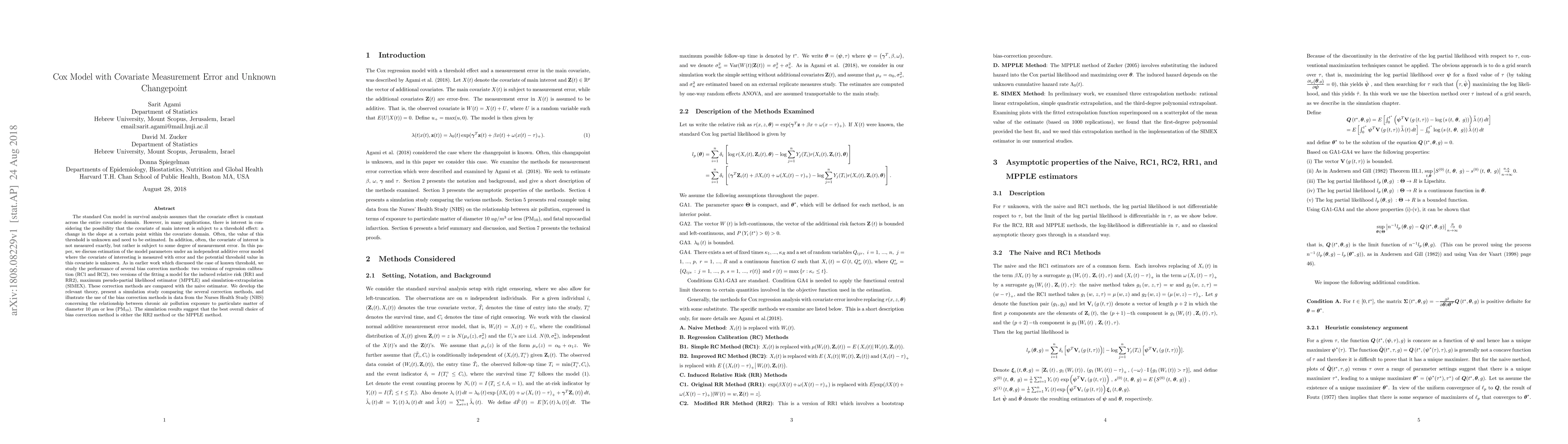 This paper proposes methods to estimate parameters in a Cox model with covariate measurement error and an unknown threshold effect. It compares several bias correction techniques, including regression calibration and simulation-extrapolation, and finds that the RR2 or MPPLE methods are most effective, as demonstrated through simulations and an application to air pollution exposure data from the Nurses Health Study.