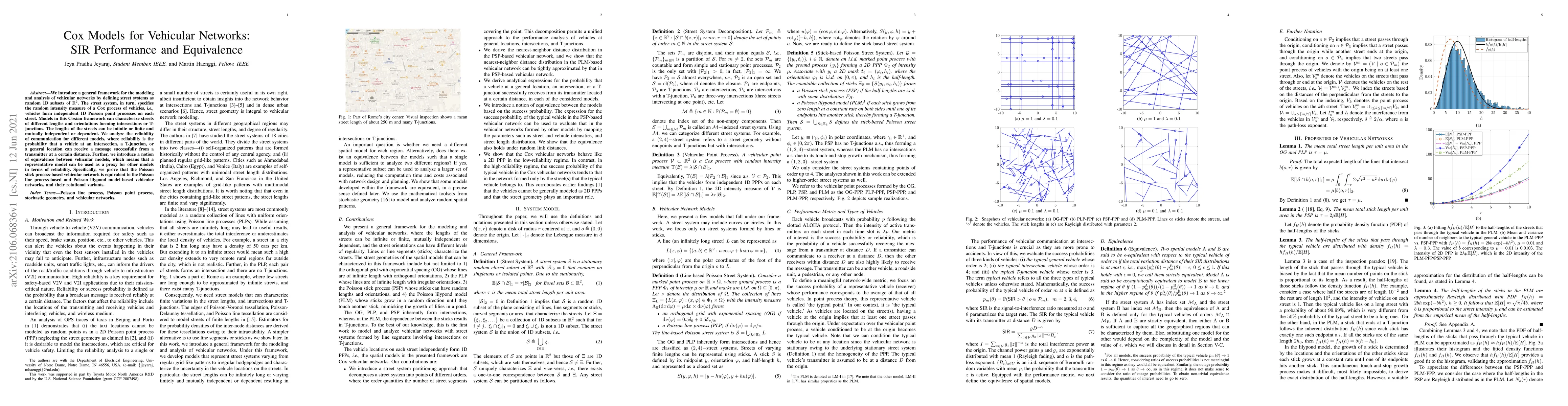 This paper presents a Cox process framework for modeling vehicular networks, analyzing communication reliability in different street configurations, and proving equivalence between various vehicular network models based on their reliability. The study shows that different models can serve as proxies for each other in terms of message reception reliability.