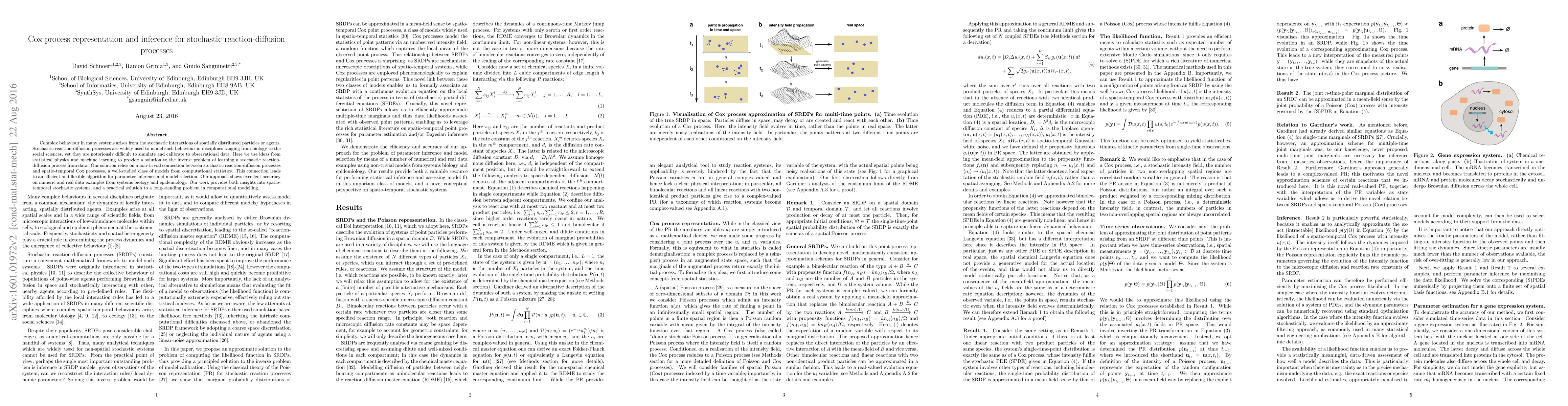 This paper proposes a novel method for inferring stochastic reaction-diffusion processes using a connection between these processes and spatio-temporal Cox processes. The approach offers an efficient algorithm for parameter inference and model selection, demonstrating accuracy in both numerical simulations and real-world data from systems biology and epidemiology.