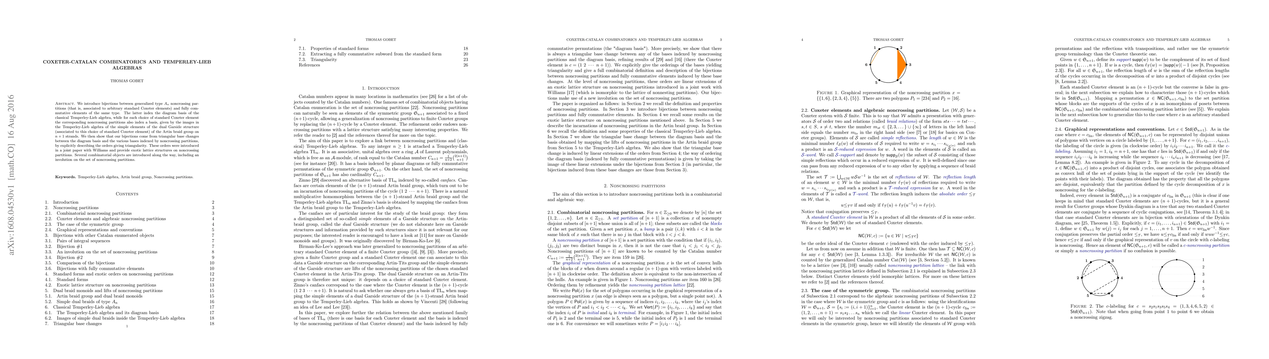 This paper establishes bijections between generalized noncrossing partitions and fully commutative elements, linking these to bases in the Temperley-Lieb algebra. It describes exotic lattice structures on noncrossing partitions through triangular base changes and introduces several combinatorial objects, including an involution on the set of partitions.