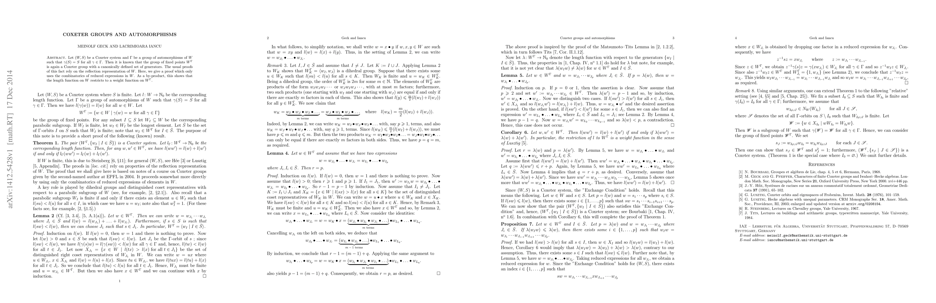 This paper presents a proof that the fixed points of a Coxeter group under a group of automorphisms preserving the generating set form another Coxeter group, relying solely on the combinatorics of reduced expressions, and demonstrates that the length function on the original group restricts to a weight function on the fixed points.