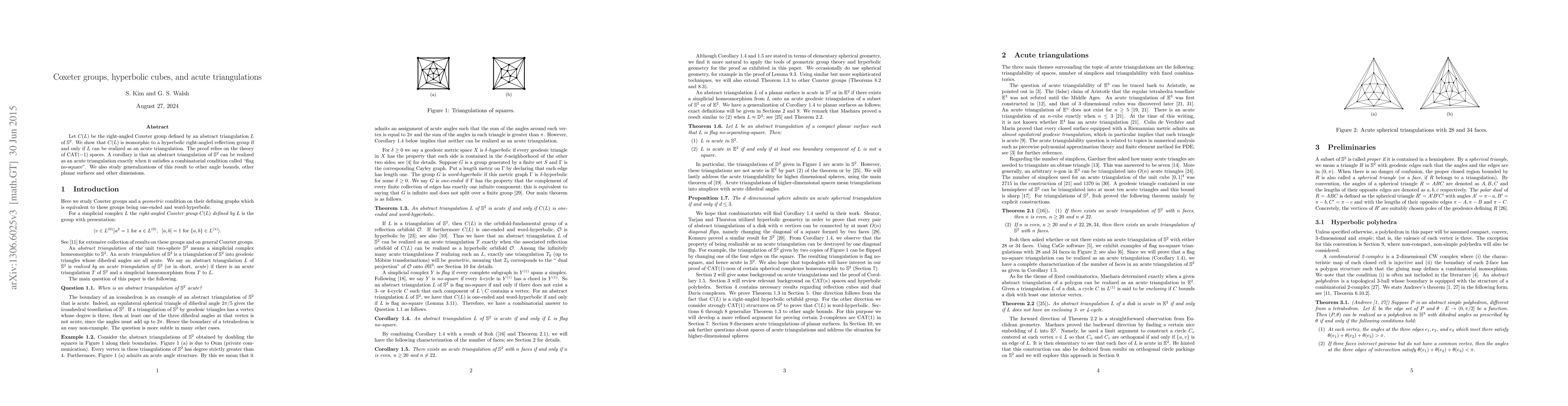 This paper establishes an isomorphism between right-angled Coxeter groups and hyperbolic right-angled reflection groups if and only if the underlying triangulation can be realized as an acute triangulation. The result is proved using CAT(-1) space theory and extends to various angle bounds and dimensions.