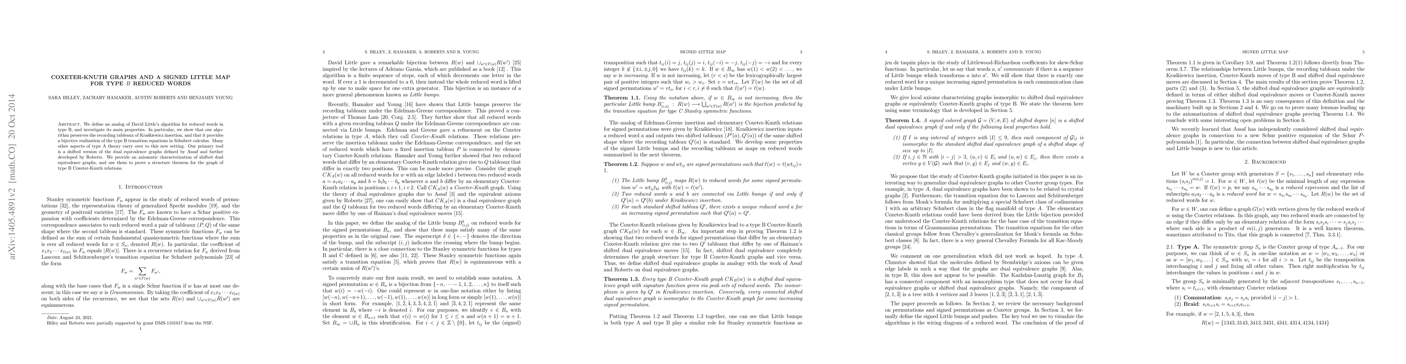 We define an analog of David Little's algorithm for reduced words in type B, and investigate its main properties. In particular, we show that our algorithm preserves the recording tableau of Kra\'{s}kiewicz insertion, and that it provides a bijective realization of the Type B transition equations in Schubert calculus. Many other aspects of type A theory carry over to this new setting. Our primary tool is a shifted version of the dual equivalence graphs defined by Assaf and further developed by Roberts. We provide an axiomatic characterization of shifted dual equivalence graphs, and use them to prove a structure theorem for the graph of Type B Coxeter-Knuth relations.
