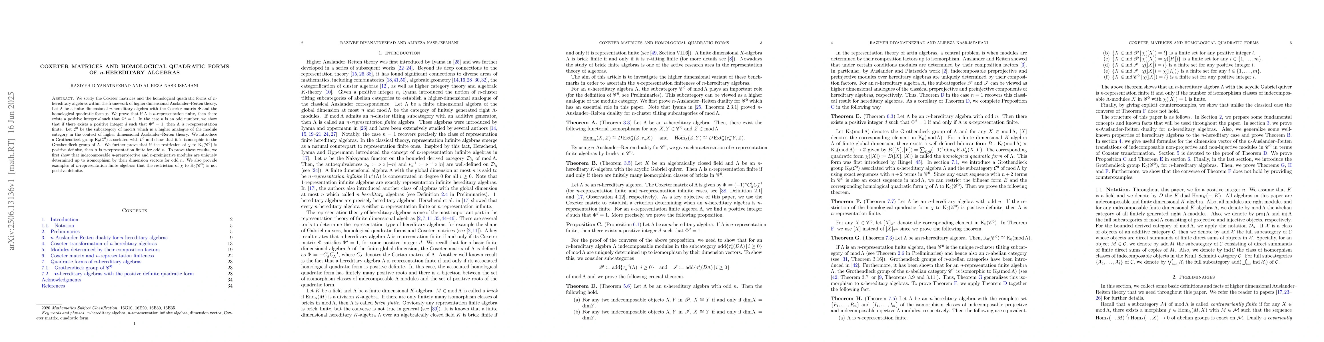 We study the Coxeter matrices and the homological quadratic forms of $n$-hereditary algebras within the framework of higher dimensional Auslander--Reiten theory. Let $\Lambda$ be a finite dimensional $n$-hereditary algebra with the Coxeter matrix $\Phi$ and the homological quadratic form $\chi$. We prove that if $\Lambda$ is $n$-representation finite, then there exists a positive integer $d$ such that $\Phi^d=1$. In the case $n$ is an odd number, we show that if there exists a positive integer $d$ such that $\Phi^d=1$, then $\Lambda$ is $n$-representation finite. Let $\mathcal{C}^0$ be the subcategory of $\modd\Lambda$ which is a higher analogue of the module category in the context of higher dimensional Auslander--Reiten theory. We introduce a Grothendieck group $\mathrm{K}_0(\mathcal{C}^0)$ associated with $\mathcal{C}^0$ and show that it is isomorphic to the Grothendieck group of $\Lambda$. We further prove that if the restriction of $\chi$ to $\mathrm{K}_0(\mcc^0)$ is positive definite, then $\Lambda$ is $n$-representation finite for odd $n$. To prove these results, we first show that indecomposable $n$-preprojective and $n$-preinjective modules are uniquely determined up to isomorphism by their dimension vectors for odd $n$. We also provide examples of $n$-representation finite algebras that the restriction of $\chi$ to $\mathrm{K}_0(\mcc^0)$ is not positive definite.