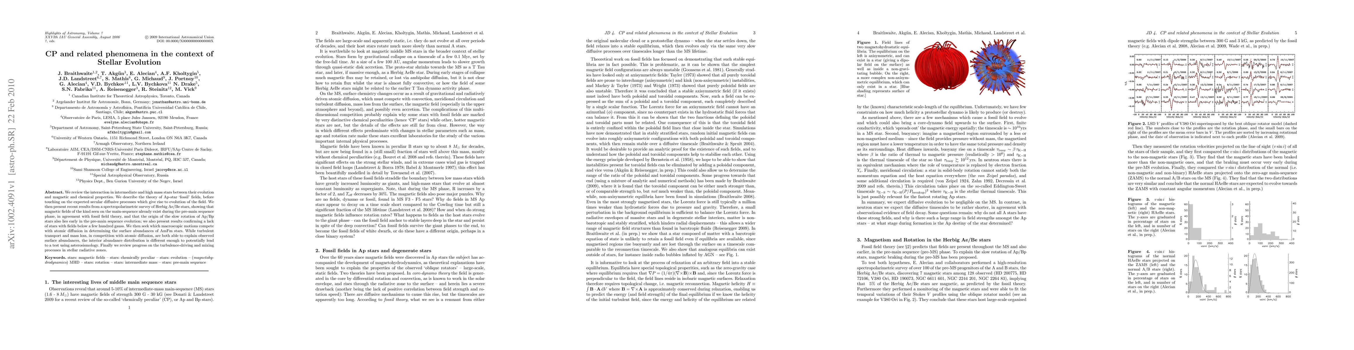 We review the interaction in intermediate and high mass stars between their evolution and magnetic and chemical properties. We describe the theory of Ap-star `fossil' fields, before touching on the expected secular diffusive processes which give rise to evolution of the field. We then present recent results from a spectropolarimetric survey of Herbig Ae/Be stars, showing that magnetic fields of the kind seen on the main-sequence already exist during the pre-main sequence phase, in agreement with fossil field theory, and that the origin of the slow rotation of Ap/Bp stars also lies early in the pre-main sequence evolution; we also present results confirming a lack of stars with fields below a few hundred gauss. We then seek which macroscopic motions compete with atomic diffusion in determining the surface abundances of AmFm stars. While turbulent transport and mass loss, in competition with atomic diffusion, are both able to explain observed surface abundances, the interior abundance distribution is different enough to potentially lead to a test using asterosismology. Finally we review progress on the turbulence-driving and mixing processes in stellar radiative zones.