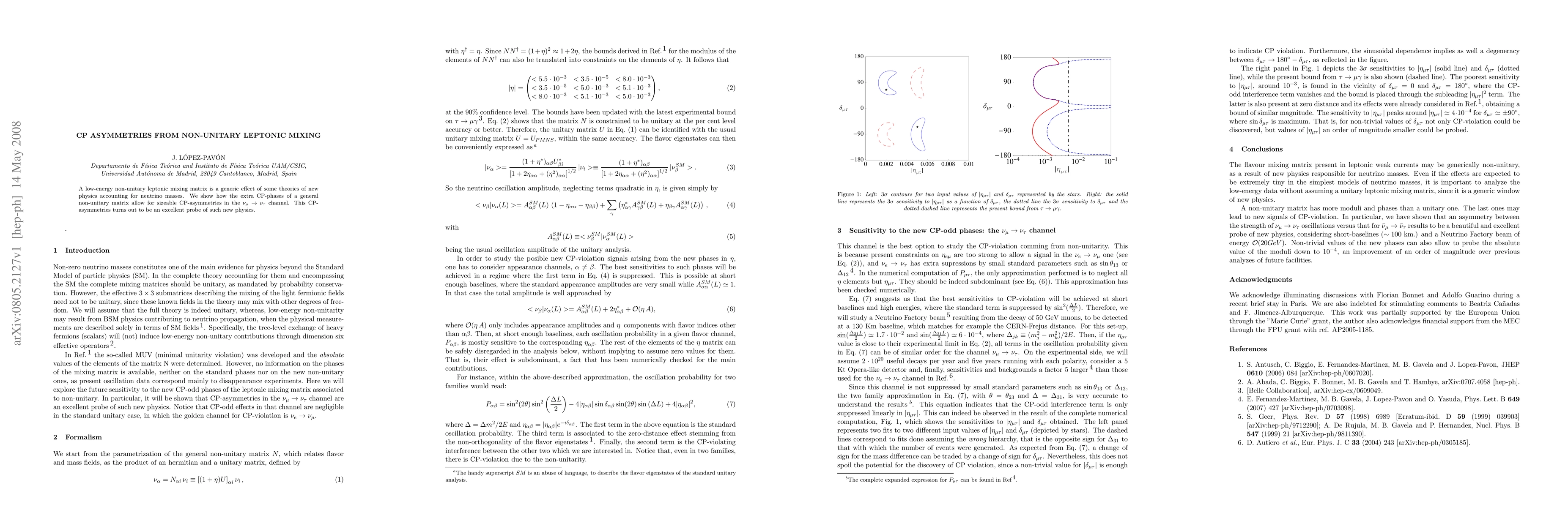 A low-energy non-unitary leptonic mixing matrix is a generic effect of some theories of new physics accounting for neutrino masses. We show how the extra CP-phases of a general non-unitary matrix allow for sizeable CP-asymmetries in the $\nu_\mu\to \nu_\tau$ channel. This CP-asymmetries turns out to be an excellent probe of such new physics.