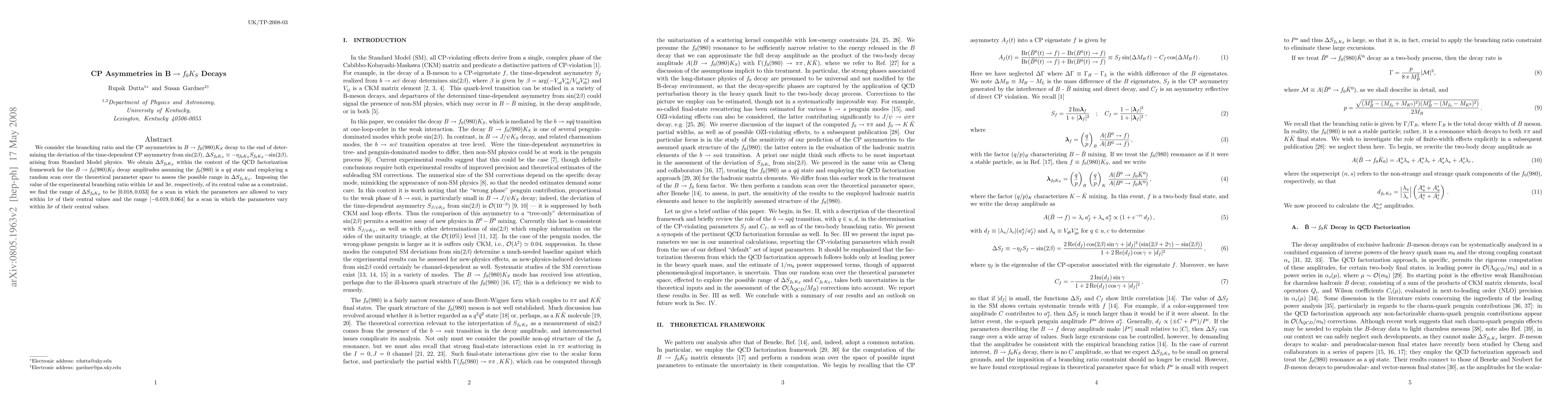 We consider the branching ratio and the CP asymmetries in B to f_0(980)K_S decay to the end of determining the deviation of the time-dependent CP asymmetry from sin(2 beta) arising from Standard Model physics. We obtain Delta S_{f_0 K_S} within the context of the QCD factorization framework for the B to f_0(980)K_S decay amplitudes assuming the f_0(980) is a q\bar{q} state and employing a random scan over the theoretical parameter space to assess the possible range in Delta S_{f_0 K_S}. Imposing the value of the experimental branching ratio within 1 sigma and 3 sigma, respectively, of its central value as a constraint, we find the range of Delta S_{f_0 K_S} to be [0.018, 0.033] for a scan in which the parameters are allowed to vary within 1 sigma of their central values and the range [-0.019, 0.064] for a scan in which the parameters vary within 3 sigma of their central values.