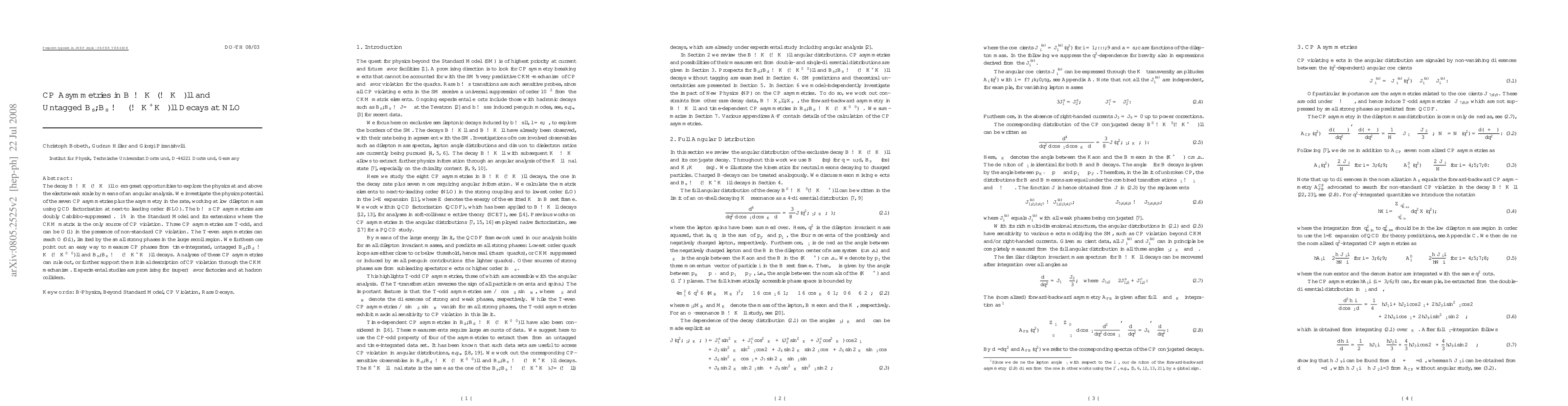 This paper explores CP asymmetries in the decay of B mesons to K* mesons and lepton pairs, analyzing the potential for probing physics beyond the Standard Model using next-to-leading order QCD. It also discusses the measurement of CP phases in untagged B_d and B_s meson decays, emphasizing the significance of these studies for future experimental facilities.