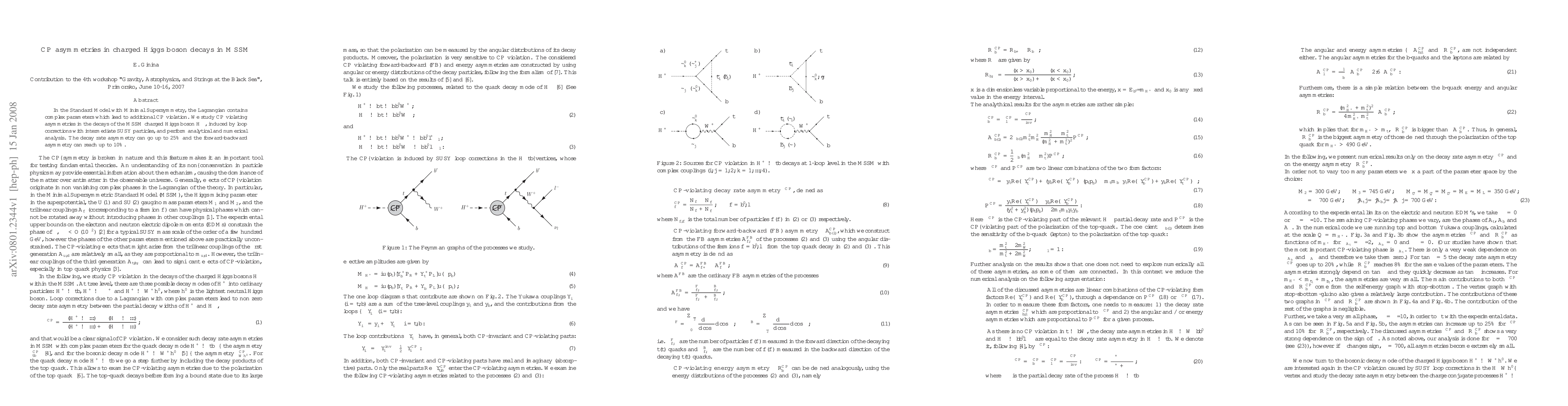 A study in particle physics found that decays of a charged Higgs boson in a certain theory could have asymmetries up to 25% and forward-backward asymmetries up to 10%, leading to potential CP violation.
