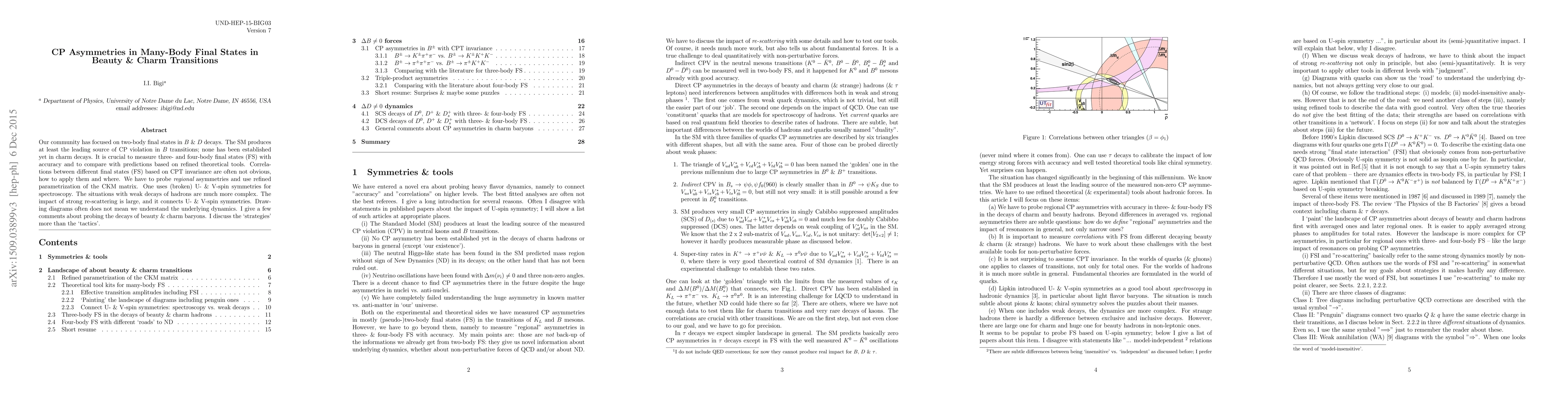 This paper discusses the need for precise measurements of CP asymmetries in three- and four-body final states during beauty and charm transitions, emphasizing the importance of comparing experimental data with refined theoretical predictions. The study highlights the complexity of weak decays and the necessity for advanced parametrization and symmetries to understand underlying dynamics.