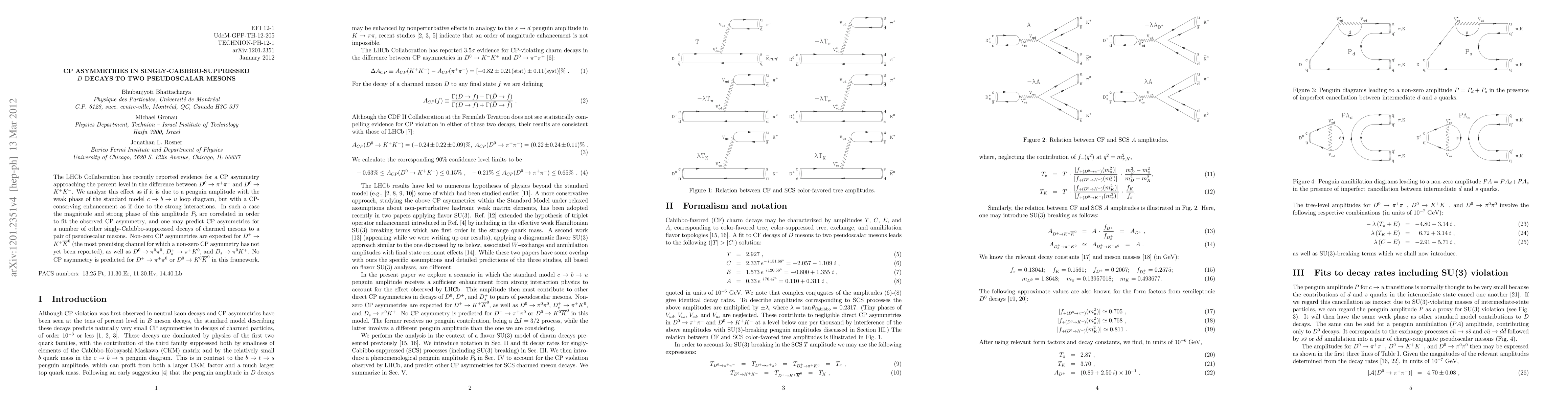 The LHCb Collaboration has recently reported evidence for a CP asymmetry approaching the percent level in the difference between $D^0 \to \pi^+ \pi^-$ and $D^0 \to K^+ K^-$. We analyze this effect as if it is due to a penguin amplitude with the weak phase of the standard model $c \to b \to u$ loop diagram, but with a CP-conserving enhancement as if due to the strong interactions. In such a case the magnitude and strong phase of this amplitude $P_b$ are correlated in order to fit the observed CP asymmetry, and one may predict CP asymmetries for a number of other singly-Cabibbo-suppressed decays of charmed mesons to a pair of pseudoscalar mesons. Non-zero CP asymmetries are expected for $D^+ \to K^+ \ok$ (the most promising channel for which a non-zero CP asymmetry has not yet been reported), as well as $D^0 \to \pi^0 \pi^0$, $D_s^+ \to \pi^+ \ko$, and $D_s \to \pi^0 K^+$. No CP asymmetry is predicted for $D^+ \to \pi^+ \pi^0$ or $D^0 \to \ko \ok$ in this framework.