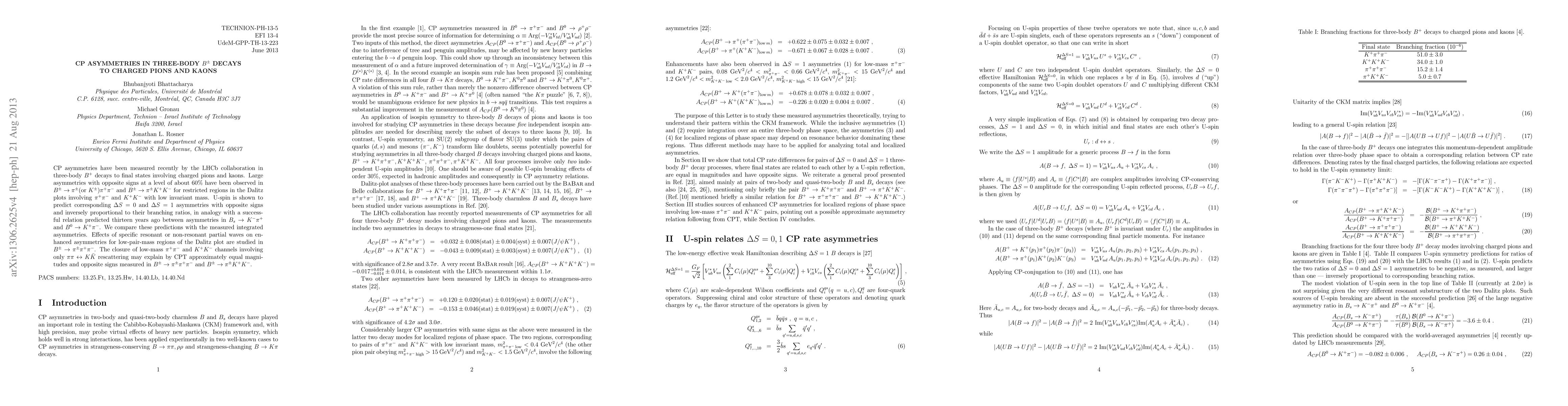The LHCb collaboration measured significant CP asymmetries in $B^\pm$ decays to charged pions and kaons, observing large asymmetries of about 60% in specific Dalitz plot regions. U-spin theory predicts corresponding asymmetries in $\Delta S=0$ and $\Delta S=1$ processes, analogous to earlier predictions for $B_s$ and $B^0$ decays, and these predictions align with the observed asymmetries.