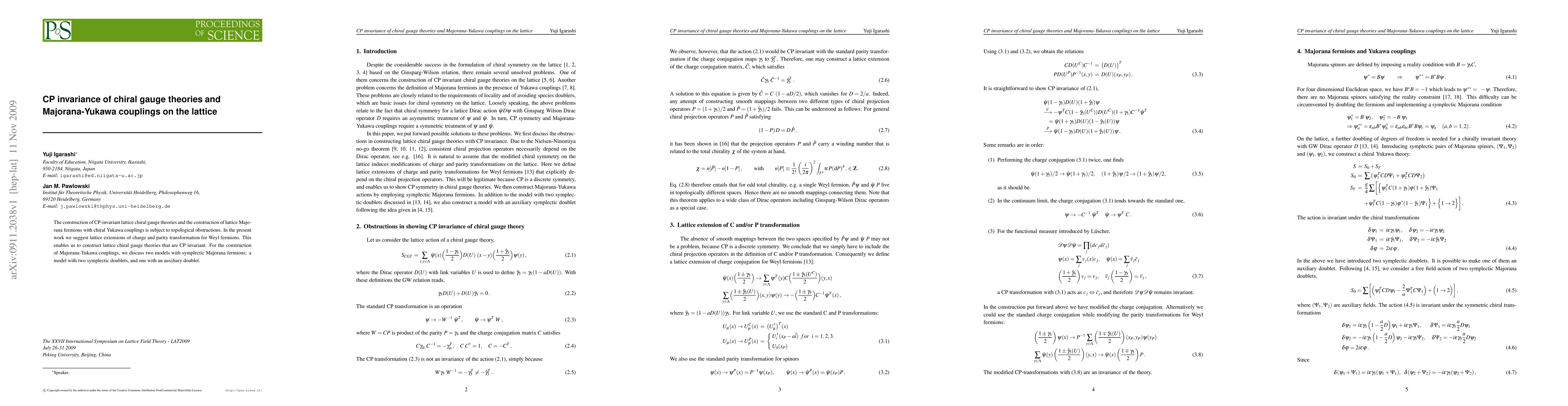 Summary: This paper proposes lattice extensions of charge and parity transformations for Weyl fermions to construct CP-invariant lattice chiral gauge theories, and introduces two models for Majorana-Yukawa couplings using symplectic Majorana fermions: one with two doublets and another with an auxiliary doublet.