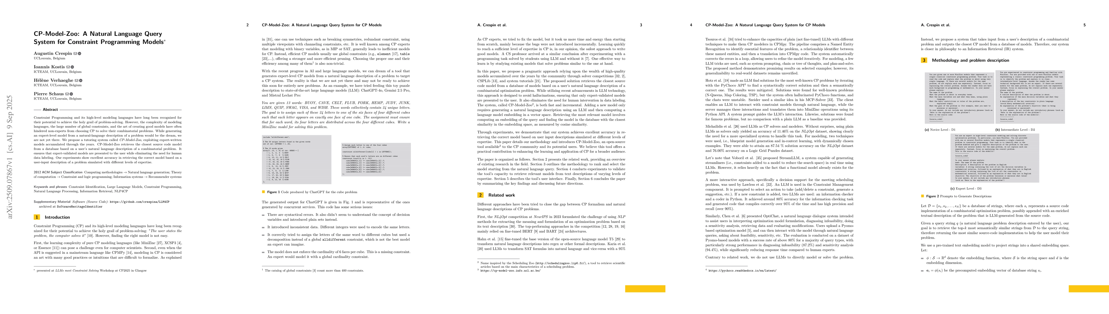 Constraint Programming and its high-level modeling languages have long been recognized for their potential to achieve the holy grail of problem-solving. However, the complexity of modeling languages, the large number of global constraints, and the art of creating good models have often hindered non-experts from choosing CP to solve their combinatorial problems. While generating an expert-level model from a natural-language description of a problem would be the dream, we are not yet there. We propose a tutoring system called CP-Model-Zoo, exploiting expert-written models accumulated through the years. CP-Model-Zoo retrieves the closest source code model from a database based on a user's natural language description of a combinatorial problem. It ensures that expert-validated models are presented to the user while eliminating the need for human data labeling. Our experiments show excellent accuracy in retrieving the correct model based on a user-input description of a problem simulated with different levels of expertise.