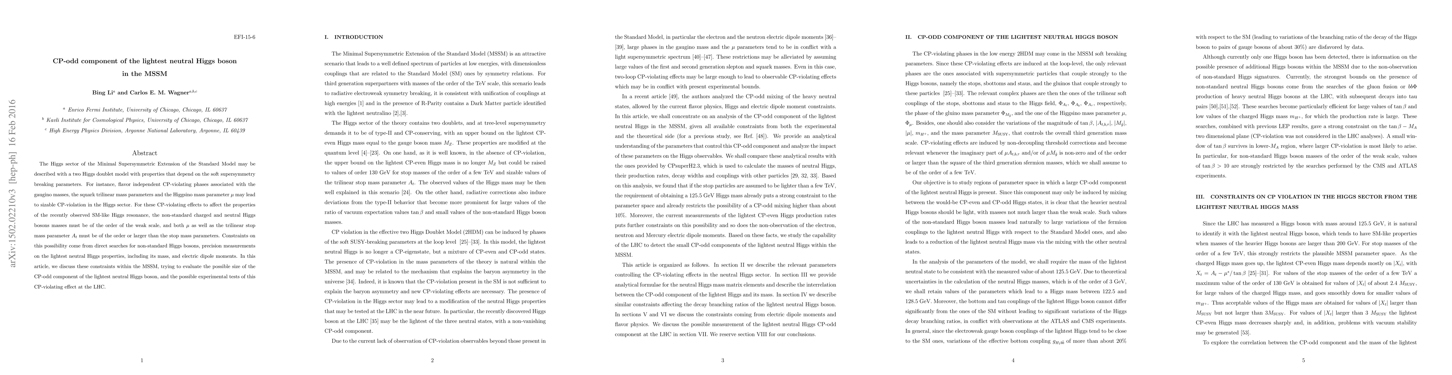 This paper investigates the CP-odd component of the lightest neutral Higgs boson in the MSSM, exploring potential CP-violation stemming from supersymmetric parameters. It evaluates constraints from Higgs searches and precision measurements to assess the size of this CP-violating effect and its detectability at the LHC.