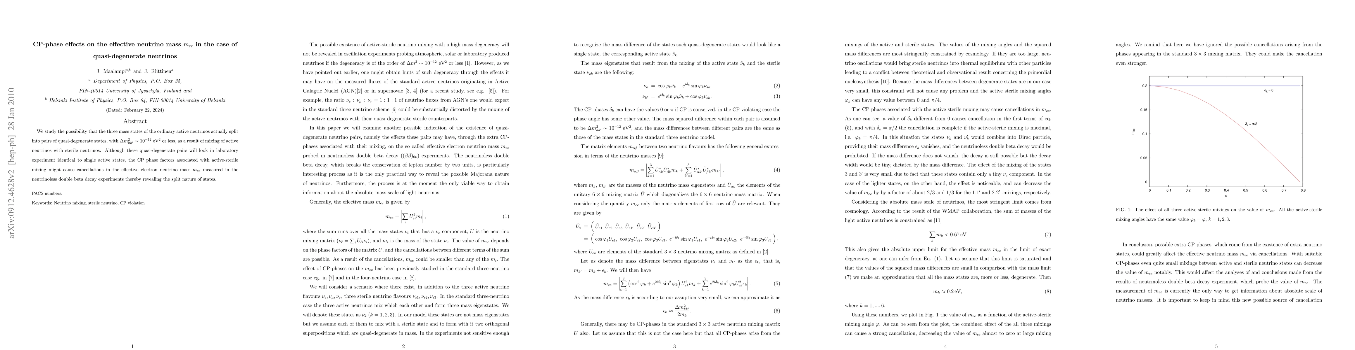 We study the possibility that the three mass states of the ordinary active neutrinos actually split into pairs of quasi-degenerate states, with $\Delta m^2_{kk'} \sim 10^{-12}$ eV$^2$ or less, as a result of mixing of active neutrinos with sterile neutrinos. Although these quasi-degenerate pairs will look in laboratory experiment identical to single active states, the CP phase factors associated with active-sterile mixing might cause cancellations in the effective electron neutrino mass $m_{ee}$ measured in the neutrinoless double beta decay experiments thereby revealing the split nature of states.