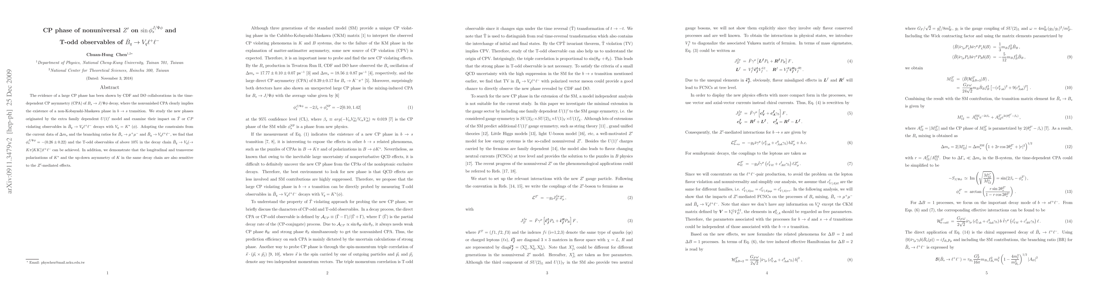 This paper investigates the impact of a nonuniversal $Z'$ boson in an extra family dependent $U(1)'$ model on CP-violating observables in $\bar B_q\to V_q \ell^{+} \ell^{-}$ decays, finding that the model can achieve T-odd observables of over 10% and is sensitive to longitudinal and transverse polarizations of $K^*$ and the up-down asymmetry of $K$.