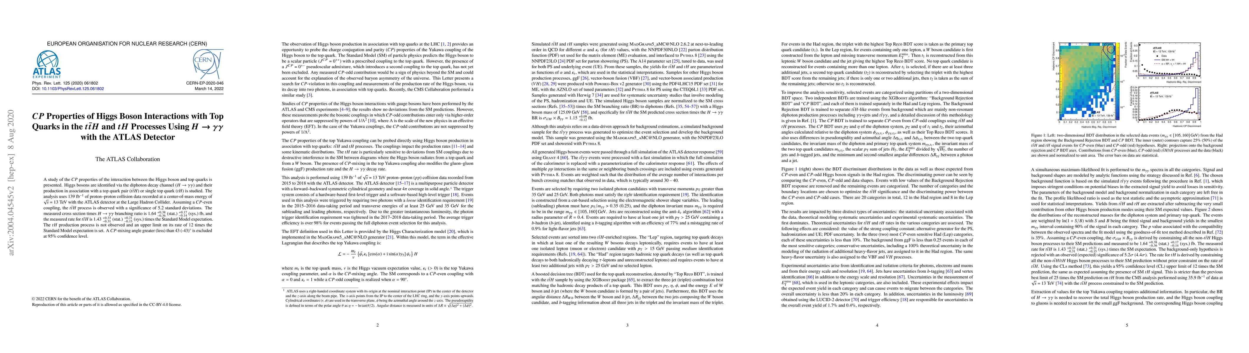 This study investigates the $CP$ properties of Higgs boson interactions with top quarks in $t\bar{t}H$ and $tH$ processes using the ATLAS detector, identifying Higgs bosons via the $H \rightarrow \gamma\gamma$ decay. The $t\bar{t}H$ process is observed with 5.2 standard deviations, while $tH$ production is not observed, setting an upper limit of 12 times the Standard Model expectation.
