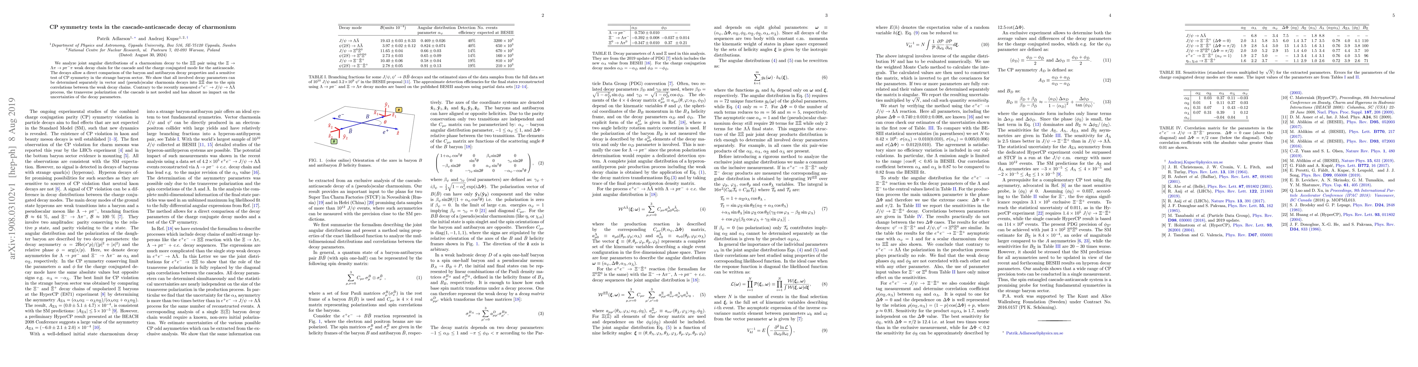 We analyze joint angular distributions of a charmonium decay to the $\Xi\bar\Xi$ pair using the $\Xi\to\Lambda\pi\to p\pi^-\pi$ weak decay chain for the cascade and the charge conjugated mode for the anticascade. The decays allow a direct comparison of the baryon and antibaryon decay properties and a sensitive test of CP symmetry in the strange baryon sector. We show that all involved decay parameters can be determined separately in vector and (pseudo)scalar charmonia decays into $\Xi\bar\Xi$ due to the spin correlations between the weak decay chains. Contrary to the recently measured $e^+e^-\to J/\psi\to \Lambda\bar\Lambda$ process, the transverse polarization of the cascade is not needed and has almost no impact on the uncertainties of the decay parameters.