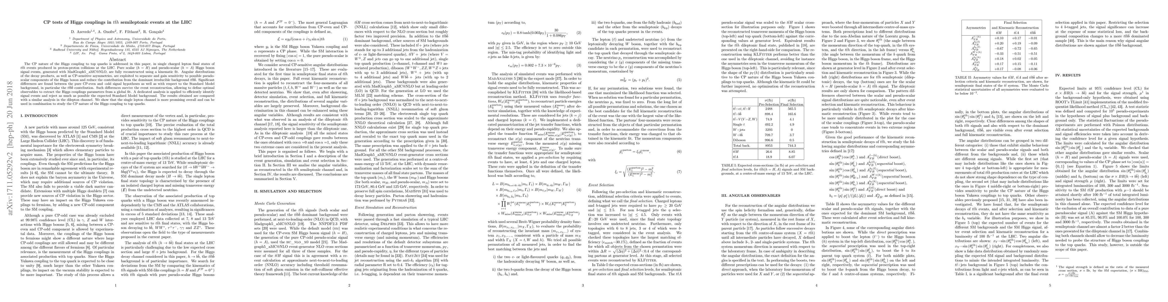 This paper investigates the CP nature of the Higgs coupling to top quarks in $t\bar{t}h$ semileptonic events at the LHC, using angular distributions and CP-sensitive asymmetries to distinguish between pure scalar and pseudo-scalar components. The single charged lepton channel proves more promising than the dilepton channel for studying these couplings.