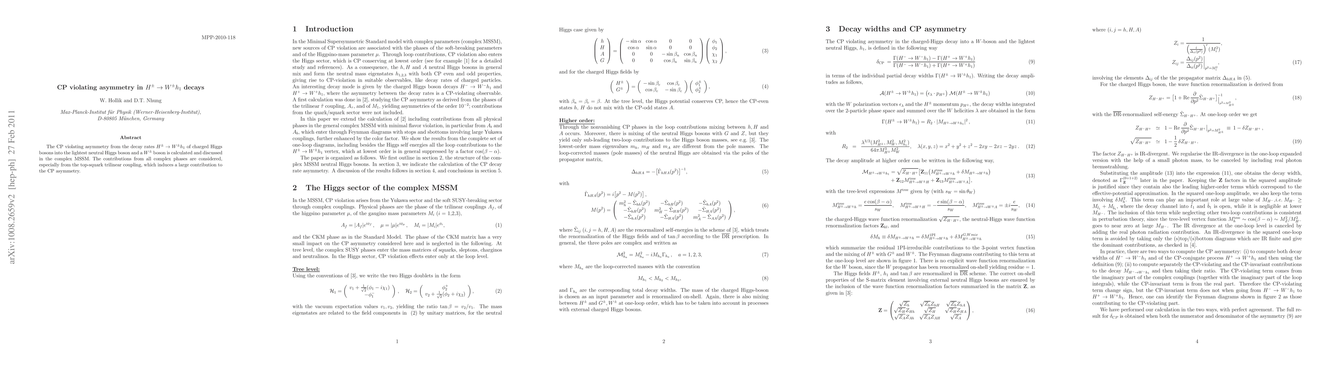 This paper calculates the CP violating asymmetry in the decay $H^\pm\to W^\pm h_1$ within the complex MSSM, focusing on the significant contributions from complex phases, particularly the top-squark trilinear coupling.
