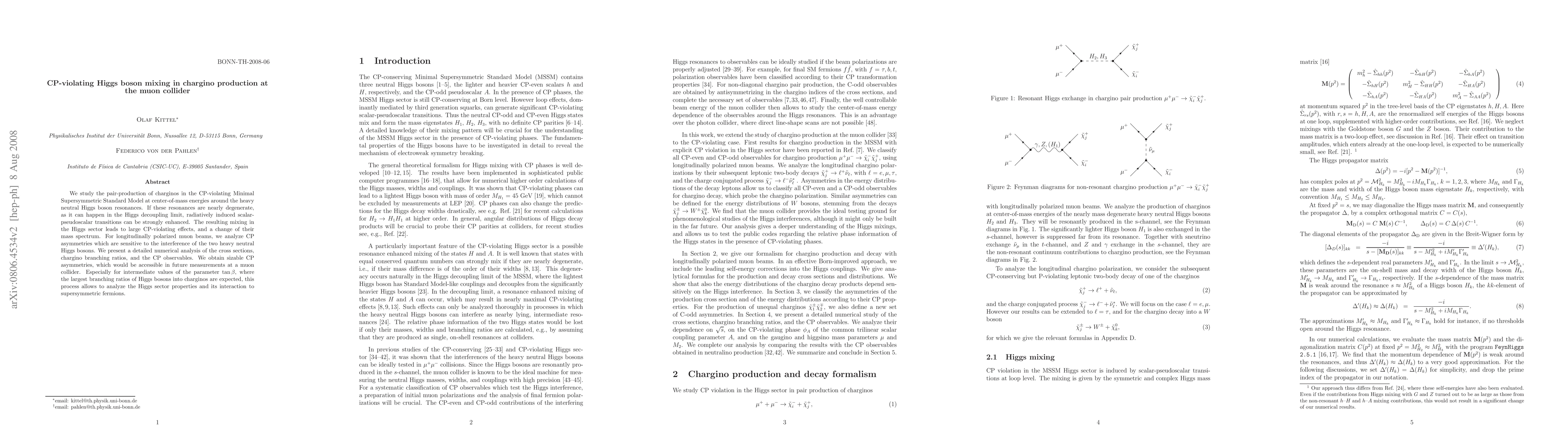 This paper investigates CP-violating effects in chargino pair production at a muon collider, focusing on the Minimal Supersymmetric Standard Model. It finds significant CP-asymmetries due to enhanced Higgs mixing in the decoupling limit, providing a means to study the Higgs sector's properties and interactions with supersymmetric fermions.