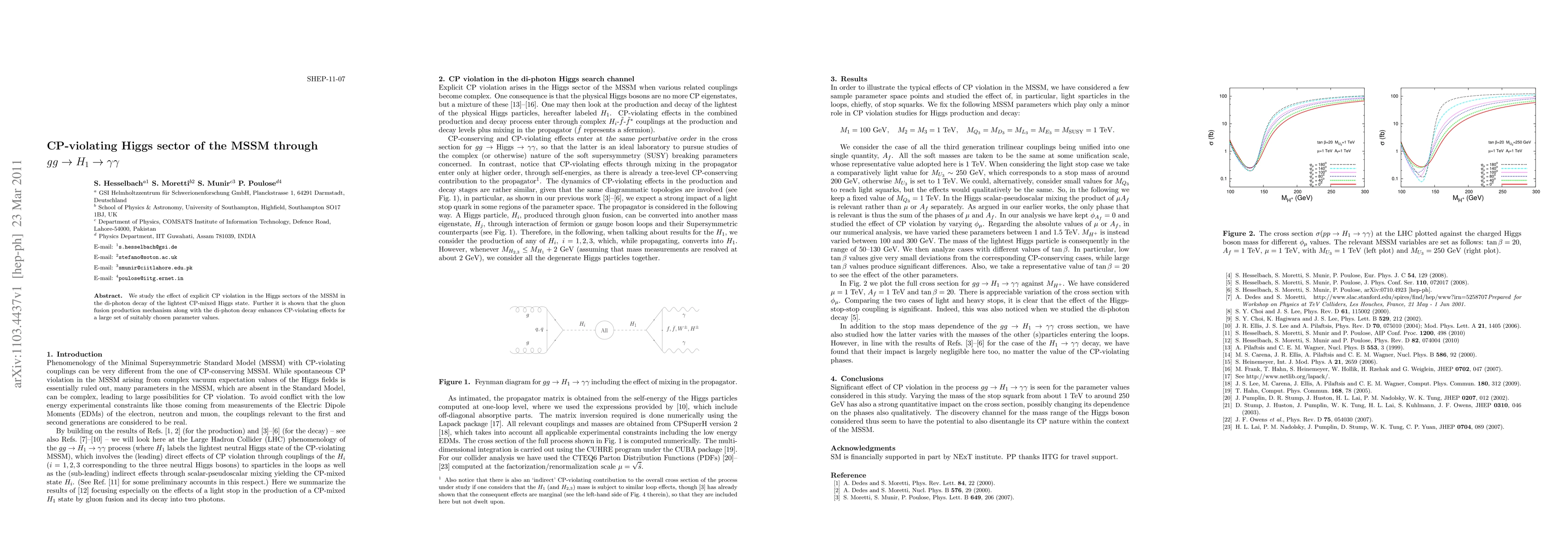 This paper investigates the CP-violating effects in the MSSM Higgs sector via the gluon fusion production of the lightest CP-mixed Higgs boson, which decays into two photons, enhancing CP-violating signals for specific parameter configurations.